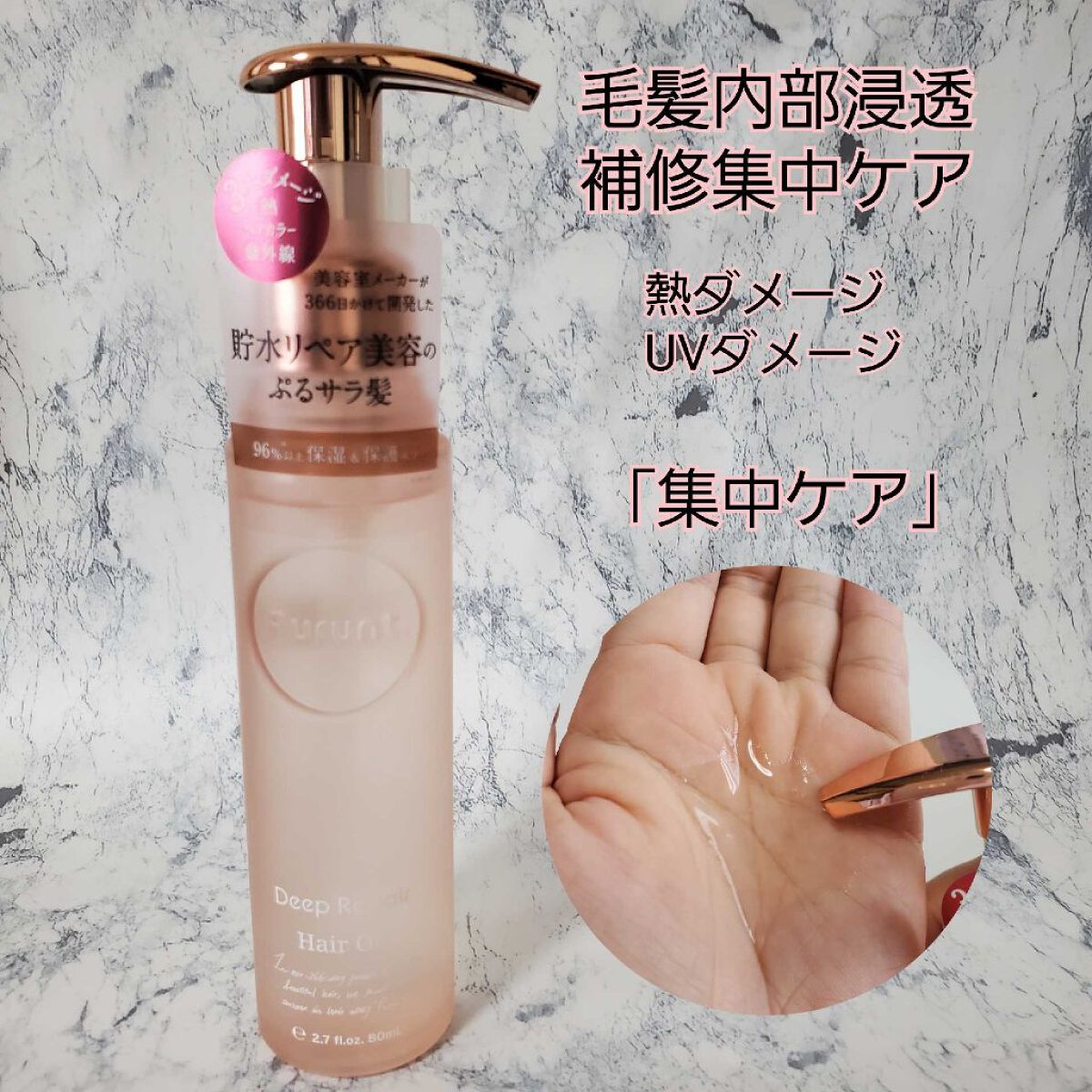 | 透明で濃密でこってりしてる!重めのテクスチャーで、髪がしっとりします! | 詳細を見る | ||