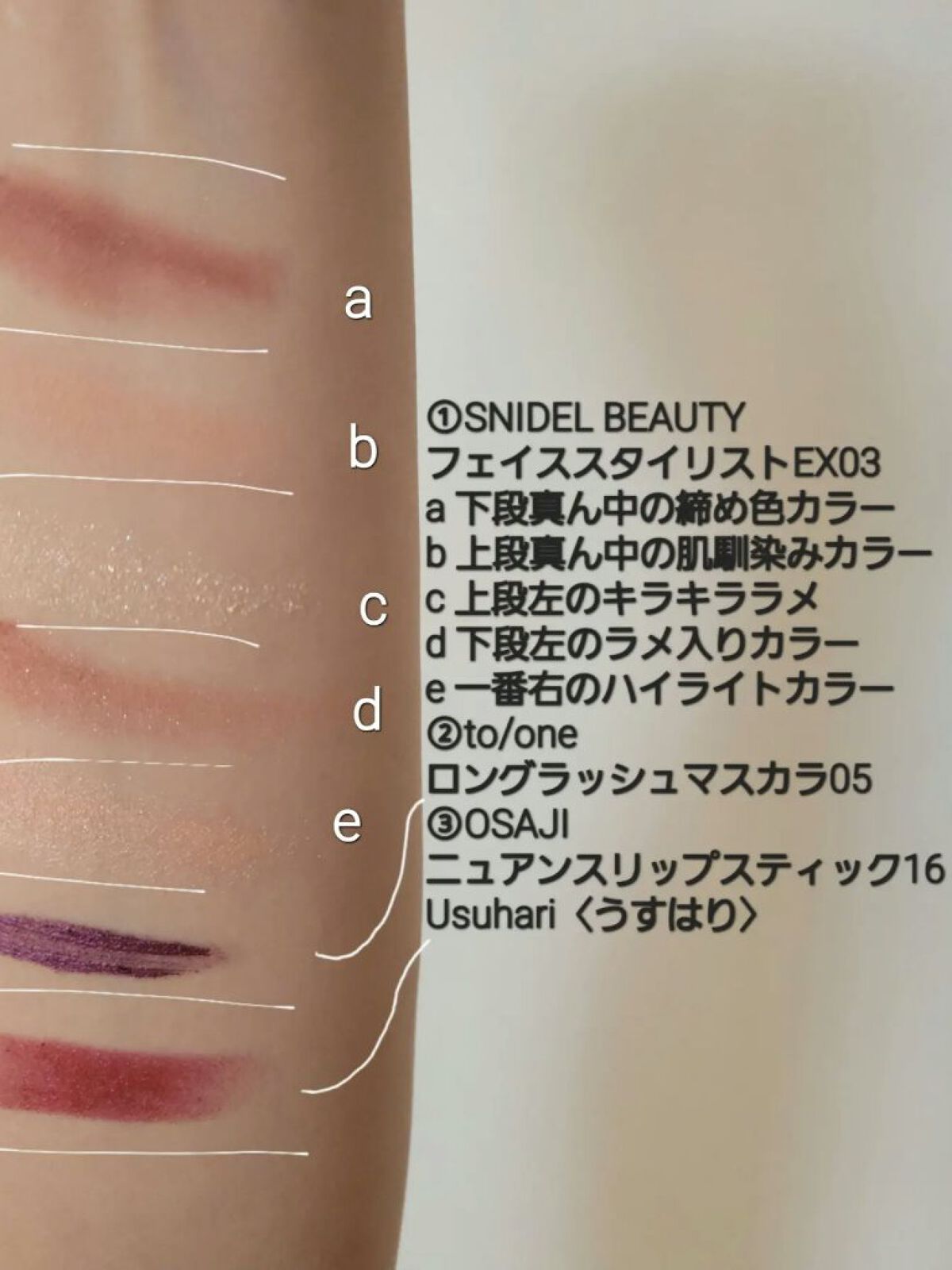 アイブロウは #WHOMEE の#レディモーヴ を。 #celvoke の #ヴォランタリーアイズ Sのアンバーを上下の瞼に指で馴染ませる。 #hince の #ニューアンビエンスカラーアイライナーの#インフューズドを上瞼の黒目上辺りから目尻に掛けて目の際にアイラインを✨ #SNIDELBEAUTY の #フェイススタイリストのa スパークリングゴールドを上瞼の黒目上に。 #SNIDELBEAUTY の #フェイススタイリストのb フロステッドシルバーを下瞼の黒目下に。 #toonecosmetics の #ロングラッシュマスカラ 05を上睫毛だけに付ける。 チークは ⑤③と同じパレットの血色感チークを。 リップは #ヒンス の #ムードインハンサーマットのアドレスを塗る。 #shirocosmetics の #エッセンスリップオイルカラー 0A04をチョチョンと重ねる💋✨ ベージュのアイライナーは抜け感というのかな✨ ゴールドとシルバーのラメは万能です👏
