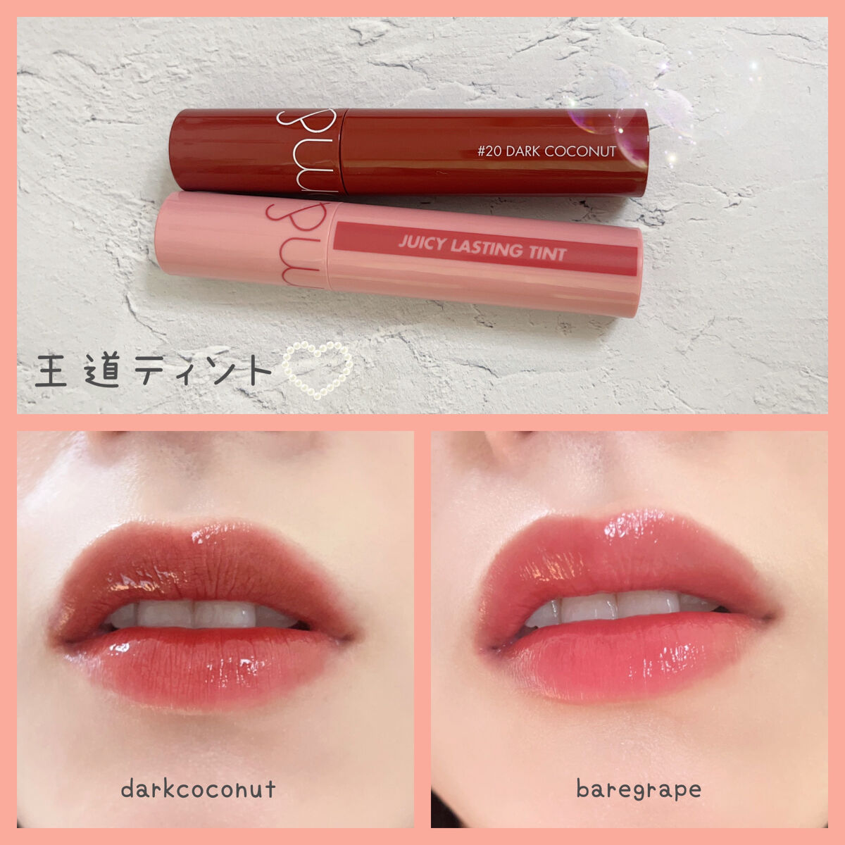 rom&nd ロムアンドジューシーラスティングティント25ベアグレープBAREGRAPE33ベアバインBAREVINErom&nd実際は、粘膜リップぽくて可愛い色❤ロムアンドのリップは、しっとり感あって、ティントで良き♪🥰#rom&nd#ジュ...