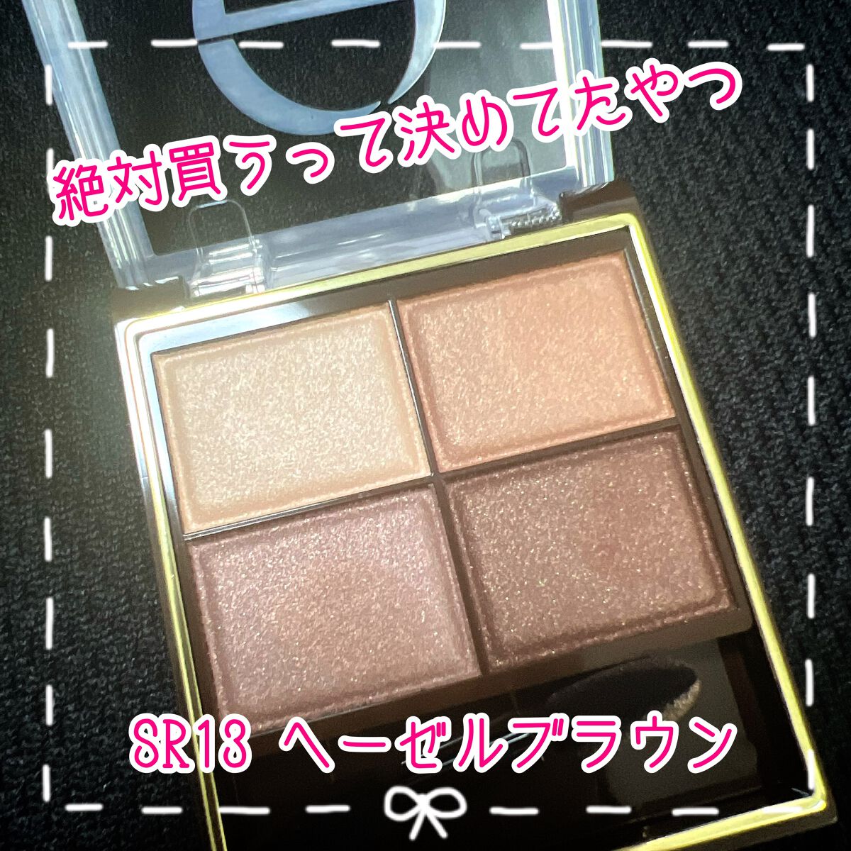 - 【ポイント】 1.失敗しらずのブラウンベースの4色パレット!簡単にグラデーションを実現。 2.しっとりリッチな質感!するする伸びて粉飛びもなく目元の乾燥も防ぎます。 3.上品な輝きの繊維パール+金パールを贅沢に配合。ギラつかない大人のツヤを演出。 <SR01'23・SR03'23・SR06'23・SR11'23(限定デザイン)> 実力派グラデアイシャドウからデジタルアートをあしらった限定デザイン登場。 しっとりリッチな密着感。肌のなじみの良い実力派グラデアイシャドウ。
