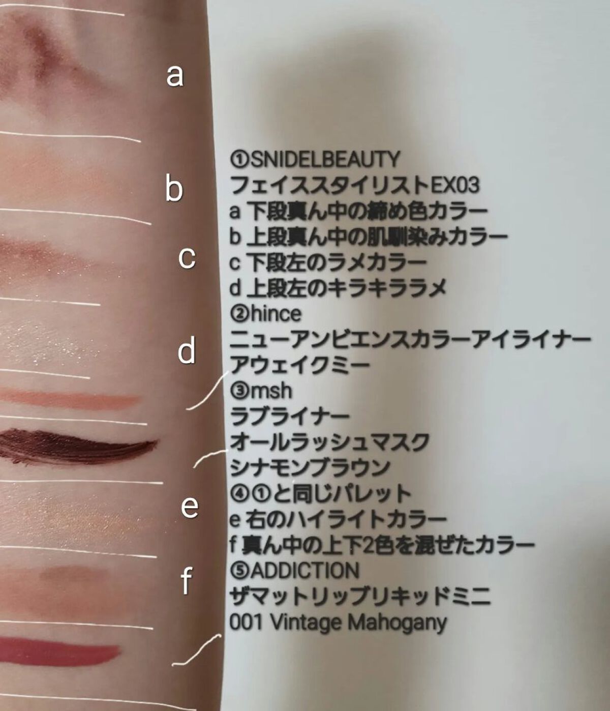 アイブロウは #WHOMEE の#レディモーヴ を使用! #hince の #ニューデップスアイシャドウパレット の a Lowkeyを上瞼全体に馴染ませる。 #rmk の#ザナウナウアイズ 02の #シークレットダスト を目頭に✨ #ヒンス の #ニューアンビエンスカラーマスカラ 上睫毛にブルーの#アンディファインド 下睫毛にオレンジ系の#ライブリー を。 #celvoke の #エンスロールマットリップス 03の テラコッタを💄💋