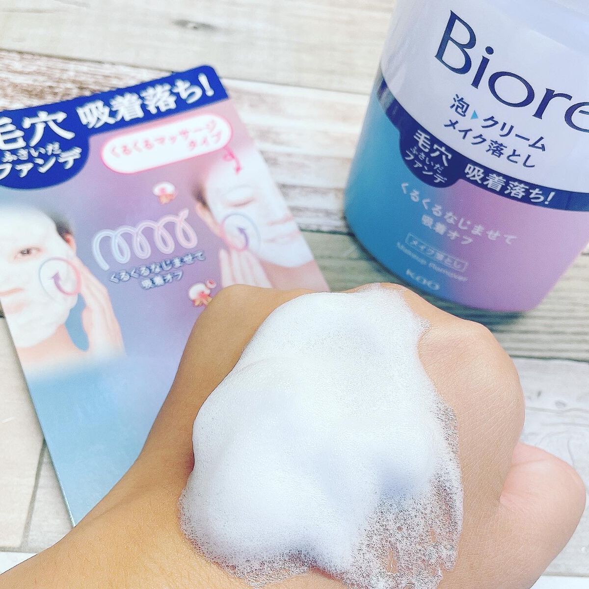 くるくるなじませて落とす。ビオレの泡クリームメイク落とし同じビオレのメイクも落とせる泡洗顔を使っていましたが、こちらに変えて試してみました。プッシュするだけで泡で出てくるから泡立て不要。ヘタレない泡で優しくくるくるすると、しっかりファンデ...