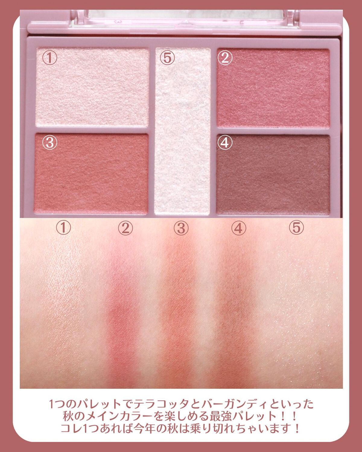 SUQQU#シグニチャーカラーアイズ01 #瑞花 ¥7,700 ルナソル#アイカラーレーション12 #ブリージーハーブ ¥6,820 excel#リアルクローズシャドウCS04 #プラムニット ¥1,650 CEZANNE#トーンアップアイシャドウ04 #ピンクブラウン ¥638 BIDOL#THEアイパレ04 強がりのピンクグレージュ ¥1,980 キャンメイク#パーフェクトスタイリストアイズ10 #スウィートフラミンゴ ¥858 キャンメイク#シルキースフレアイズ06 #トパーズピンク ¥825