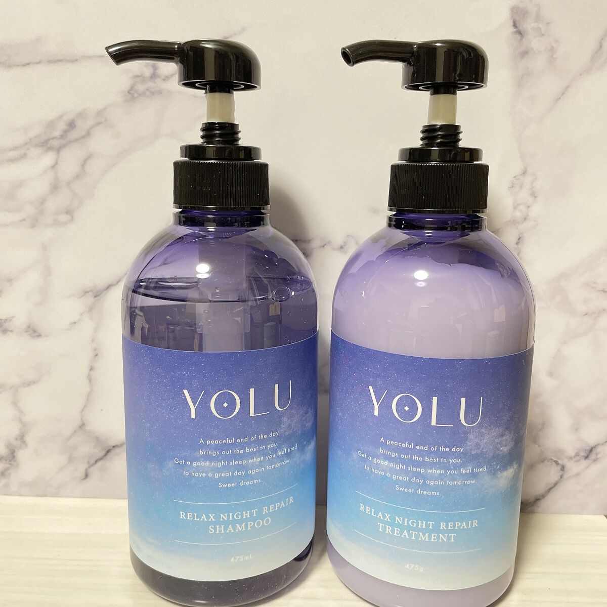 「YOLU」さまから商品提供していただきました♡\\サラサラ髪へ🌙//*YOLU*リラックスナイトリペアシャンプー&トリートメント深呼吸したくなるようなネイビーブルーのグラデーションのパケ🌙シャンプーはやわらかめのテクスチャー泡立ちはとても良...