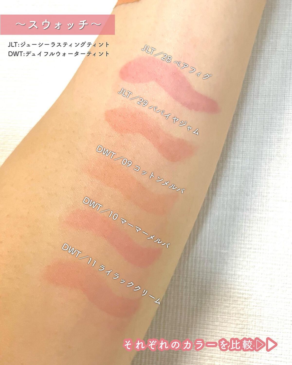 デュイフルウォーターティントはツヤのある仕上がりが特徴のリップ🫶🏻それでいてティントだから色もちもよくてさすがロムアンドさま‥!🥹 今回発売された新色はどれもヌーディーカラーで日本人にもぴったり馴染むの🤧🤍 そしてそして14は日本限定カラーでLOFTやPLAZAなどで購入できます💌