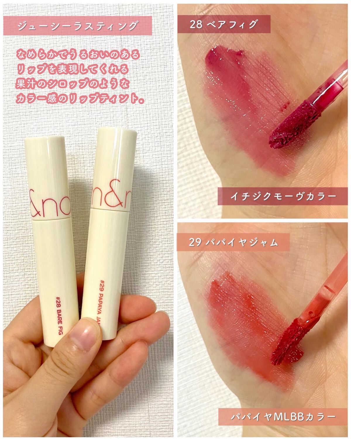 今回のロムアンド、ジューシーラスティングティント新色はベージュみの強いまろやかカラー❤️ 少しくすんだ色合いで全体にナチュラルな落ち着いてる印象のカラーなので大人でも使いやすそう💄 韓国コスメ#韓国リップ #韓国ティント #粘膜カラー #粘膜リップ #くすみカラーリップ