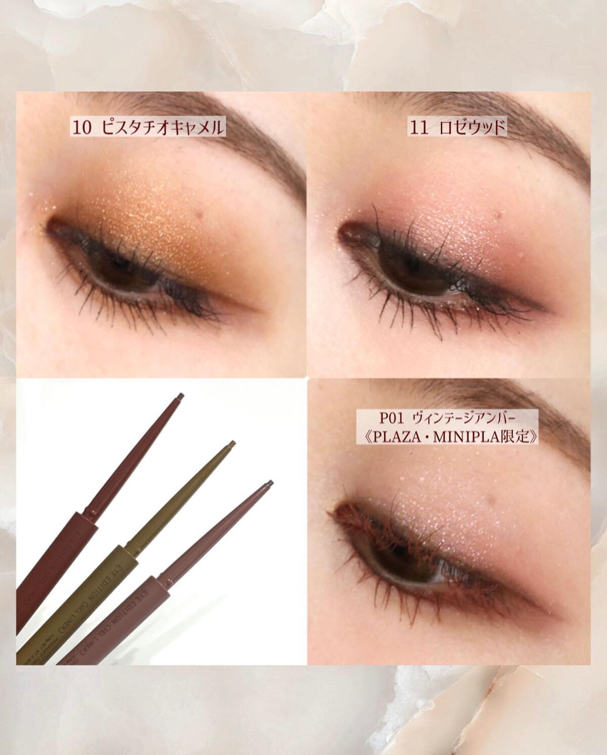 - <02 ピンクブラウン> トリメチルシロキシケイ酸、メチルトリメチコン、ポリエチレン、(アクリレーツ/アクリル酸ステアリル/メタクリル酸ジメチコン)コポリマー、カルナウバロウ、キャンデリラロウ、スクワラン、ホホバ種子油、トリイソステアリン酸ポリグリセリル-2、水酸化Al、ジメチコン、トコフェロール、酸化鉄、酸化チタン、マイカ、グンジョウ <03 ウォームブラウン> トリメチルシロキシケイ酸、メチルトリメチコン、ポリエチレン、(アクリレーツ/アクリル酸ステアリル/メタクリル酸ジメチコン)コポリマー、カルナウバロウ、キャンデリラロウ、スクワラン、ホホバ種子油、トリイソステアリン酸ポリグリセリル-2、ジメチコン、トコフェロール、水酸化Al、酸化鉄、マイカ、酸化チタン、グンジョウ <04 オレンジブラウン> トリメチルシロキシケイ酸、メチルトリメチコン、ポリエチレン、(アクリレーツ/アクリル酸ステアリル/メタクリル酸ジメチコン)コポリマー、カルナウバロウ、キャンデリラロウ、スクワラン、ホホバ種子油、トリイソステアリン酸ポリグリセリル-2、ジメチコン、水酸化Al、トコフェロール、酸化鉄、グンジョウ、マイカ、酸化チタン <06 グレージュ> トリメチルシロキシケイ酸、メチルトリメチコン、ポリエチレン、(アクリレーツ/アクリル酸ステアリル/メタクリル酸ジメチコン)コポリマー、カルナウバロウ、キャンデリラロウ、スクワラン、ホホバ種子油、トリイソステアリン酸ポリグリセリル-2、水酸化Al、ジメチコン、トコフェロール、酸化鉄、酸化チタン、マイカ、グンジョウ <09 ヘーゼルチャイ> イソドデカン、トリメチルシロキシケイ酸、合成ワックス、(アクリレーツ/アクリル酸ステアリル/メタクリル酸ジメチコン)コポリマー、カルナウバロウ、ジフェニルシロキシフェニルトリメチコン、スクワラン、ホホバ種子油、ジメチコン、水酸化Al、トコフェロール、酸化鉄、酸化チタン、マイカ、グンジョウ <18 アプリコットブラウン> イソドデカン、トリメチルシロキシケイ酸、合成ワックス、(アクリレーツ/アクリル酸ステアリル/メタクリル酸ジメチコン)コポリマー、カルナウバロウ、ジフェニルシロキシフェニルトリメチコン、ホウケイ酸(Ca/Al)、スクワラン、ホホバ種子油、ジメチコン、水酸化Al、トコフェロール、酸化スズ、酸化鉄、マイカ、酸化チタン、グンジョウ <19 インディゴブラック> イソドデカン、トリメチルシロキシケイ酸、合成ワックス、(アクリレーツ/アクリル酸ステアリル/メタクリル酸ジメチコン)コポリマー、カルナウバロウ、ジフェニルシロキシフェニルトリメチコン、ジメチコン、トコフェロール、スクワラン、ホホバ種子油、水酸化Al、酸化鉄、マイカ、グンジョウ、酸化チタン、ホウケイ酸(Ca/Al)、酸化スズ <01 バーガンディブラウン> トリメチルシロキシケイ酸、メチルトリメチコン、ポリエチレン、(アクリレーツ/アクリル酸ステアリル/メタクリル酸ジメチコン)コポリマー、カルナウバロウ、キャンデリラロウ、スクワラン、ホホバ種子油、トリイソステアリン酸ポリグリセリル-2、水酸化Al、ジメチコン、トコフェロール、酸化鉄、グンジョウ、酸化チタン、マイカ <05 オリーブブラウン> トリメチルシロキシケイ酸、メチルトリメチコン、ポリエチレン、(アクリレーツ/アクリル酸ステアリル/メタクリル酸ジメチコン)コポリマー、カルナウバロウ、キャンデリラロウ、スクワラン、ホホバ種子油、トリイソステアリン酸ポリグリセリル-2、ジメチコン、トコフェロール、水酸化Al、酸化鉄、グンジョウ、マイカ、酸化チタン <08 カシスシナモン> カシスシナモン トリメチルシロキシケイ酸、メチルトリメチコン、ポリエチレン、(アクリレーツ/アクリル酸ステアリル/メタクリル酸ジメチコン)コポリマー、カルナウバロウ、キャンデリラロウ、スクワラン、ホホバ種子油、トリイソステアリン酸ポリグリセリル-2、水酸化Al、ジメチコン、トコフェロール、酸化鉄、グンジョウ、酸化チタン、マイカ <10 ピスタチオキャメル> トリメチルシロキシケイ酸、メチルトリメチコン、ポリエチレン、(アクリレーツ/アクリル酸ステアリル/メタクリル酸ジメチコン)コポリマー、カルナウバロウ、トリイソステアリン酸ポリグリセリル-2、キャンデリラロウ、スクワラン、ホホバ種子油、ジメチコン、水酸化Al、トコフェロール、マイカ、酸化鉄、酸化チタン、グンジョウ、コンジョウ <11 ロゼウッド> トリメチルシロキシケイ酸、メチルトリメチコン、ポリエチレン、(アクリレーツ/アクリル酸ステアリル/メタクリル酸ジメチコン)コポリマー、カルナウバロウ、トリイソステアリン酸ポリグリセリル-2、キャンデリラロウ、スクワラン、ホホバ種子油、ジメチコン、水酸化Al、トコフェロール、マイカ、酸化鉄、酸化チタン <13 ミモザブラウン> トリメチルシロキシケイ酸、メチルトリメチコン、合成ワックス、(アクリレーツ/アクリル酸ステアリル/メタクリル酸ジメチコン)コ