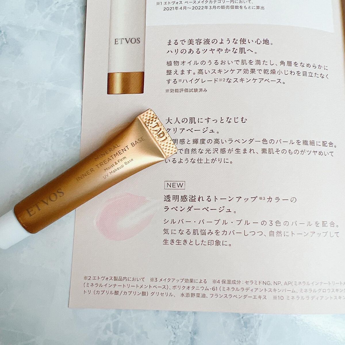 しっとりとしたツヤ感のある肌に仕上がる美容液下地「ミネラルインナートリートメントベース」はパサつき感をケアしながら素肌を活かし、ベースメイクの土台を作ります。 セラミドや植物オイルなどの保湿成分を配合しているため、使う度に肌の土台を整えつつ、しっとりとしたツヤ感やうるおい感を引き立ててくれますよ😉💕 自然な仕上がりでトーンアップも感じ、ちょっとそこまでのお出かけならこれ一本で十分🏃♀️💨