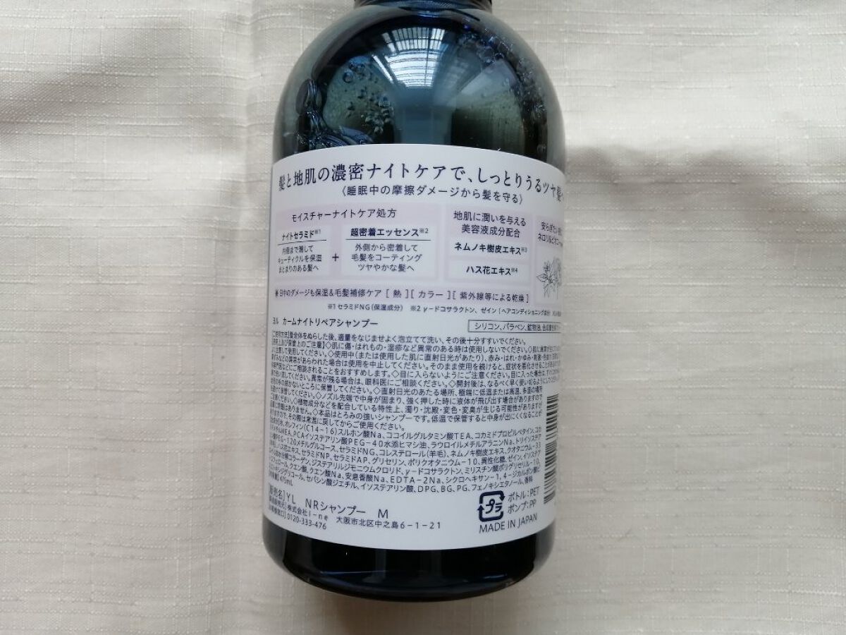 - ダメージリスクは日中だけでなく、夜にも。髪と地肌の濃密ナイトケアで、しっとりうるツヤ髪へ。 ナイトキャップ処方で睡眠中の摩擦・乾燥ダメージから髪を守り、地肌に潤いを与える美容液成分配合。 シャンプー:シリコン、パラベン、鉱物油、合成着色料フリー トリートメント:パラベン、鉱物油、合成着色料フリー ◎ネロリ&ピオニーの香り