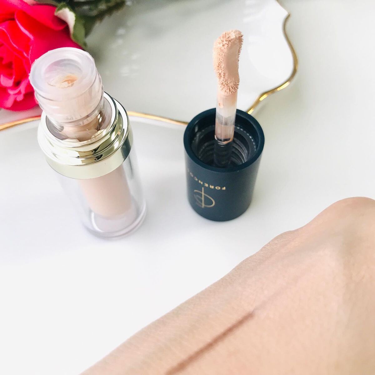 フォレンコスの代名詞ともいえるコンシーラー🤍 噂は勿論知っていましたが実際に使ってみて色々と驚くことが盛りだくさんでした😂😂💕 塗ってみてすぐの直感がすぐにぴたりと密着されるということでした!指で擦ってみてもなかなか剥がれたりよれたりすることがなかったのでメイク直しも基本的に不要な印象☝️ そして何よりもカバー力が凄まじい…大きめの吹き出物ができてしまった時でも安心できるくらいに綺麗にカバーできました◎
