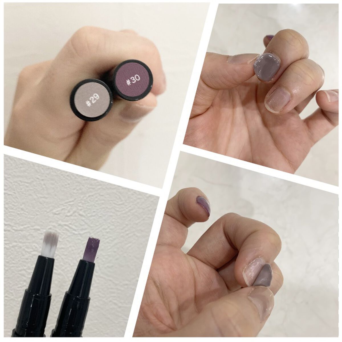- 「ベース」「カラー」「トップ」の3つの役割を1本で果たす、便利なオールインワンジェル。ペンのような感覚で持つことができ自爪も塗りやすく、収納もコンパクト。リムーバー無しで剥がしてオフできるからその日だけネイルにもぴったりです。さらに特有の嫌なニオイがほとんどなく、パラベンやタルクなども処方されていません。誰でもネイルを楽しめます。