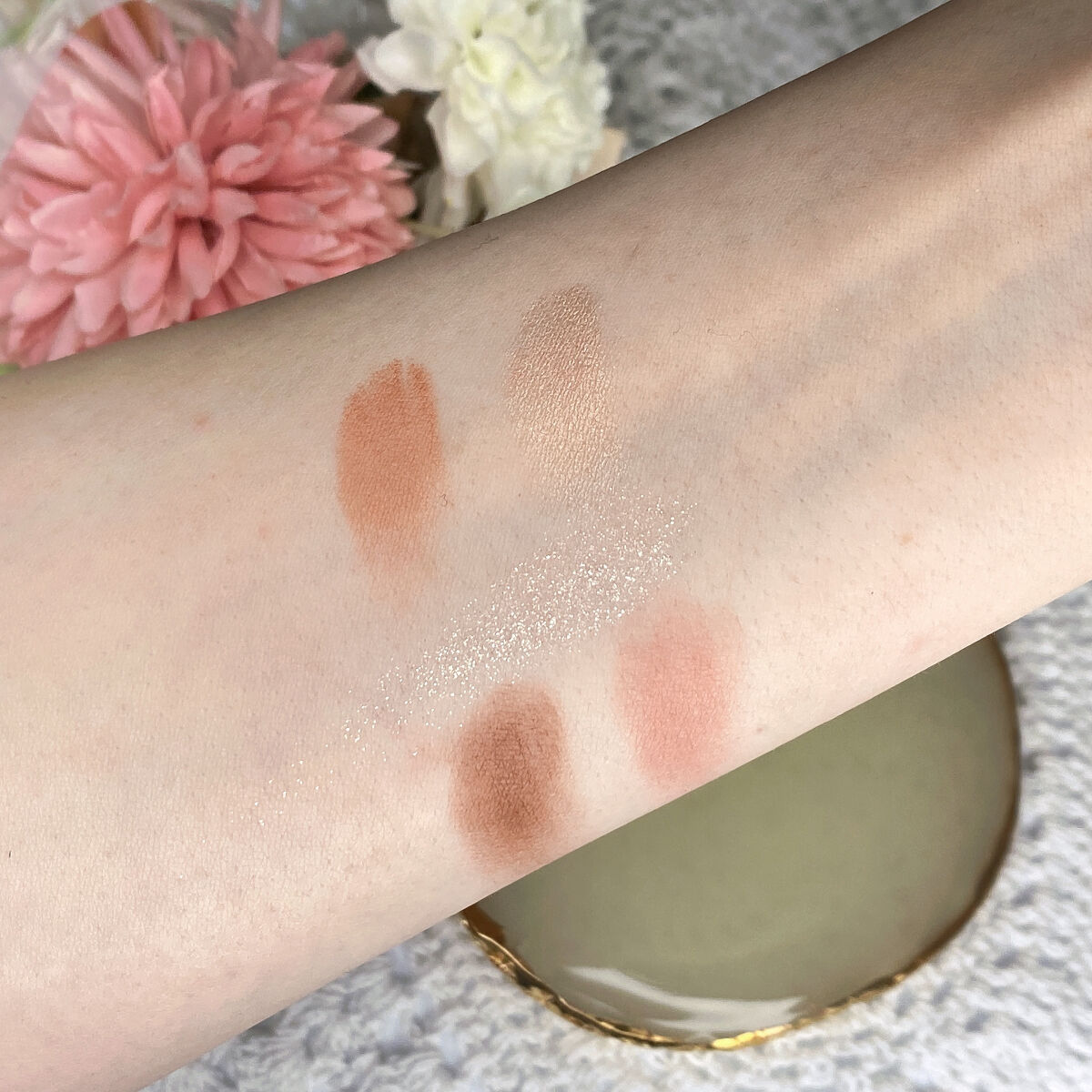 温かな雰囲気で愛されオーラを感じる ナチュラルに色気を宿すカラーパレット 10色の中に5つの質感が閉じ込められていて 重ねるごとに色気が際立つ…💕 粉質はこれViseeなの!?て思うくらい 今までのViseeとはちがう もっともっとしっとりとしてて お肌にぴたーっと密着してくれる感じ😳✨ このラメ感はプチプラじゃないよ… 本当にキレイすぎてずっと眺めていられるし うへへ〜てよ○れが出そうになるくらいキレイ。笑 アイシャドウとしてだけではなく チーク、ハイライト、シェーディング にも使えるカラーが入ってるから これ1つでだいたいのメイク完成させられて めちゃくちゃ時短になるっ◎ 粘膜色だから肌なじみ抜群だし この色味と程よいツヤのおかげで 血色感と透明感も叶えてくれるし ぬってすぐにティッシュでふいても しっかり色が残ってくれるし 良すぎてかわいすぎて困る!笑 塗るときもじゅわっと溶けるような 唇の上でするするすべる感じもお気に入り🥰