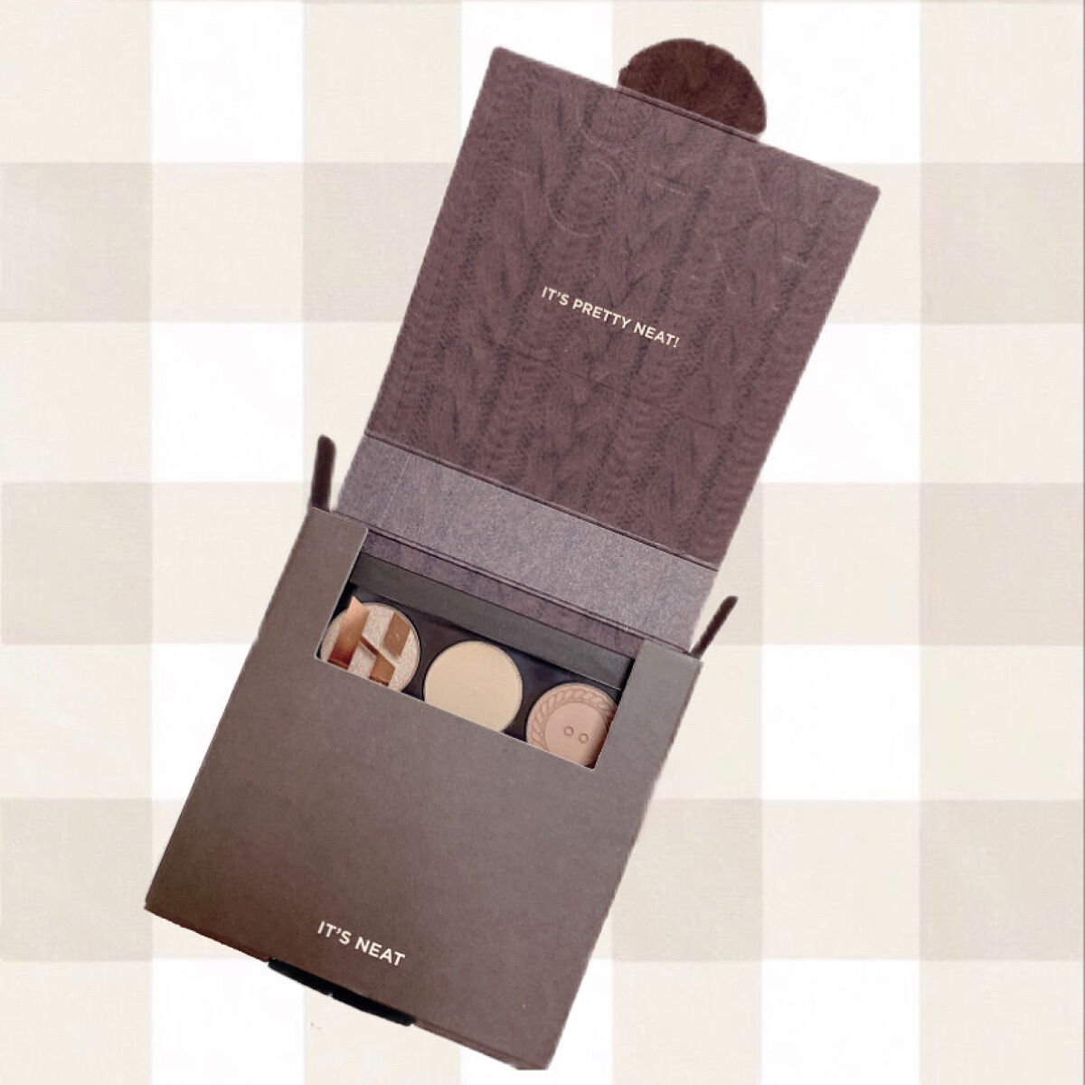 - <05 ニートニット> 〈Oat-A〉タルク、合成フルオロフロゴパイト、窒化ホウ素、リンゴ酸ジイソステアリル、ミリスチン酸Mg、シ リカ、 ナイロン-12、 トリ(カプリル酸/カプリン酸)グリセリル、 メチルプロパンジオール、 マカデミア種子油、 ジ メチコン、ステアリン酸Mg、プロパンジオール、ラウロイルリシン、ヒドロキシプロピルビスパルミタミドMEA、ス テアリン酸ジメチコノール、トリエトキシカプリリルシラン、水酸化Al、メチコン、カオリン、水、香料、マイカ、酸化チ タン、酸化鉄、マンガンバイオレット、グンジョウ 〈Zero-B〉タルク、ナイロン-12、窒化ホウ素、ミリスチン酸Mg、 シリカ、 ジエチルヘキサン酸ネオペンチルグリコール、 フェニルトリメチコン、 メチルプロパンジオール、 ヘキサ(ヒ ドロキシステアリン酸/ステアリン酸/ロジン酸)ジペンタエリスリチル、 リンゴ酸ジイソステアリル、 ネオペンタン 酸イソステアリル、 ステアロイルオキシステアリン酸オクチルドデシル、 ステアリン酸Mg、 プロパンジオール、 ジメ チコン、ポリブテン、水添レシチン、 トリエトキシカプリリルシラン、水酸化Al、ラウロイルリシン、カオリン、水、香 料、マイカ、酸化チタン、酸化鉄、マンガンバイオレット、グンジョウ 〈Neat-C〉タルク、窒化ホウ素、シリカ、ステア ロイルオキシステアリン酸オクチルドデシル、フェニルトリメチコン、ジメチコン、ミリスチン酸Mg、ナイロン-12、 メチルプロパンジオール、 ヘキサ(ヒドロキシステアリン酸/ステアリン酸/ロジン酸)ジペンタエリスリチル、 マカ デミア種子油、 リンゴ酸ジイソステアリル、 水酸化Al、 プロパンジオール、 トリエトキシカプリリルシラン、 ステアリ ン酸Mg、ラウロイルリシン、サラソウジュ種子脂、水、カオリン、香料、マイカ、酸化チタン、酸化鉄、マンガンバイオ レット 〈Nougat-D〉タルク、合成フルオロフロゴパイト、シリカ、トリ(カプリル酸/カプリン酸)グリセリル、ミリス チン酸Mg、ステアリン酸Mg、マカデミア種子油、ジメチコン、メチルプロパンジオール、トリエトキシカプリリルシ ラン、ジミリスチン酸Al、プロパンジオール、カオリン、水酸化Al、マルトデキストリン、水、香料、マイカ、酸化鉄、 マンガンバイオレット、酸化チタン、グンジョウ、カルミン 〈Knot-E〉水、ホウケイ酸(Ca/Na)、合成フルオロフロ ゴパイト、ホウケイ酸(Ca/チタン)、ホウケイ酸(Ca/Al)、ジメチコン、ステアロイルオキシステアリン酸オクチル ドデシル、リンゴ酸ジイソステアリル、グリセリン、ミリスチン酸Mg、パルミチン酸イソプロピル、シリカ、オクテニ ルコハク酸デンプンAl、ステアリン酸Mg、ペンチレングリコール、ポリソルベート20、トリエトキシカプリリルシラ ン、 (アクリルアミド/アクリロイルジメチルタウリンNa)コポリマー、 酸化スズ、 ケイ酸(Al/Mg)、 オリーブ油脂 肪酸ソルビタン、ステアリン酸ソルビタン、イソヘキサデカン、フェノキシエタノール、ソルビン酸K、エチルヘキシル グリセリン、デヒドロ酢酸Na、ポリソルベート80、オレイン酸ソルビタン、トコフェロール、マイカ、酸化チタン、酸 化鉄 〈Cashew-F〉タルク、窒化ホウ素、ナイロン-12、ジエチルヘキサン酸ネオペンチルグリコール、シリカ、フェ ニルトリメチコン、ミリスチン酸Mg、メチルプロパンジオール、リンゴ酸ジイソステアリル、ヘキサ(ヒドロキシステ アリン酸/ステアリン酸/ロジン酸)ジペンタエリスリチル、 ネオペンタン酸イソステアリル、 ステアロイルオキシス テアリン酸オクチルドデシル、ステアリン酸Mg、プロパンジオール、ジメチコン、ポリブテン、水添レシチン、ラウロ イルリシン、水酸化Al、メチコン、トリエトキシカプリリルシラン、カオリン、水、香料、マイカ、酸化チタン、酸化鉄、マンガンバイオレット 〈Crochet-G〉タルク、窒化ホウ素、リンゴ酸 ジイソステアリル、ナイロン-12、シリカ、ミリスチン酸Mg、トリ(カプリル酸/カプリン酸)グリセリル、ステアリン酸Mg、メチルプロパンジオール、ステアリン酸ジメチコノール、 プロパンジオール、ジメチコン、ラウロイルリシン、ヒドロキシプロピルビスパルミタミドMEA、トリエトキシカプリリルシラン、カオリン、水酸化Al、メチコン、水、香料、マイカ、酸化 鉄、酸化チタン、マンガンバイオレット、グンジョウ 〈Button-H〉タルク、シリカ、リンゴ酸ジイソステアリル、窒化ホウ素、ナイロン-12、ミリスチン酸Mg、トリ(カプリル酸/カプリ ン酸)グリセリル、ステアリン酸Mg、メチルプロパンジオール、マカデミア種子油、ジメチコン、プロパンジオール、ステアリン酸ジメチコノール、ラウロイルリシン、ヒドロキシプロ ピルビスパルミタミドMEA、カオリン、トリエトキシカプリリルシラン、水酸化Al、メチコン、マルトデキストリン、水、香料、マイカ、酸化鉄、マンガンバイオレット、酸化チタン、グン ジョウ、カルミン、黄4 〈Knitted-I〉タルク、シリカ、ステアロイルオキシステ