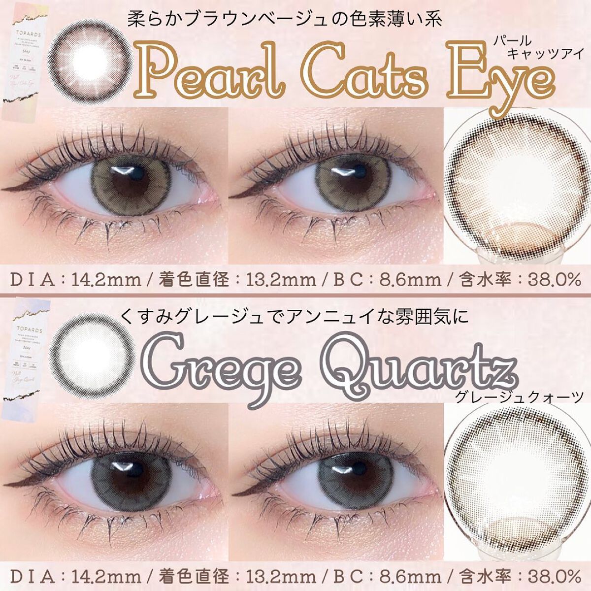 - ※2025年6月以降、商品パッケージ裏面・側面の一部表記を順次変更いたします。尚、これにかかる商品の交換・返品は承っておりません。 ■UVカット 紫外線を99%カットします。 ※UV-A波75%、UV-B波99%カット ■低含水 長時間の装用を考えた、レンズ自体に必要な水分が少ない低含水レンズです。※使用時間には個人差がありますので必ず眼科医の指導に従って下さい。 ■レンズ構造 着色剤がポリマー層によりレンズ内に包埋しています。 ■ 非イオン性レンズ 汚れが付きにくく視界をクリアに保ち、快適さが持続します。※装用感には個人差があります。 ■レンズ形状レンズ形状 フチに丸みをつけより快適な着け心地を目指しました。 Moon Melt Brown(ムーンメルトブラウン) とろける甘さのブラウンカラーに月の光を散りばめた、きらめき水光レンズ。 Cat Pearl(キャットパール) くっきり細フチでまんまるな印象の瞳♡きゅるんと子猫っぽグレーレンズ。 Jelly Quartz(ゼリークォーツ) ぼかし細フチでぷるんと輝くような瞳に、毎日使いたくなる引き算大人盛れレンズ。 カラーコンタクトレンズの不適正使用による眼障害の危険性等などがあります。 ●コンタクトレンズは高度管理医療機器です。不十分な洗浄・消毒など不適切なケアや、長時間・交換期間を超えた装用により、アレルギー性結膜炎、角膜感染症、角膜潰瘍等の重篤な眼障害が発生する危険性があります ●ご使用前に取扱説明書を確認してください 使用上の留意事項 ●眼科医院等を受診してからお求めください ●眼に異常を感じたら直ちにレンズ使用を中止し、お近くの眼科等で診察を受けてください ●医師の指示にしたがってご使用ください ●コンタクトレンズを装用する場合、自覚症状がなくても、眼科医院等での定期検査を受けてください ●レンズに不具合がある場合は使用しないでください