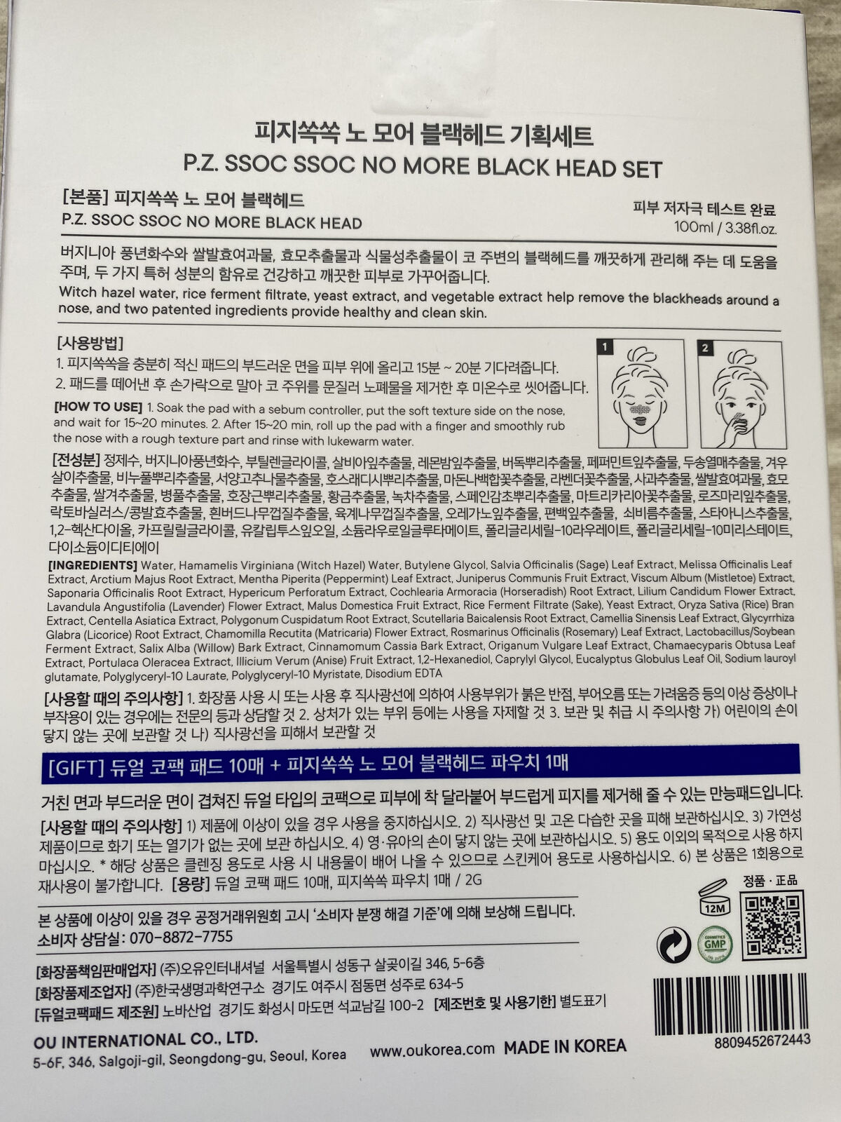 - <ノーモアブラックヘッド(ノーズピーリング)> 水、ハマメリス水、BG、セージ葉エキス、メリッサ葉エキス、アルクチウムマジュス根エキス、セイヨウハッカ葉エキス、セイヨウネズ果実エキス、セイヨウヤドリギエキス、サボンソウ根エキス、セイヨウオトギリソウエキス、ワサビダイコン根エキス、マドンナリリー花エキス、ラベンダー花エキス、リンゴ果実エキス、コメ発酵液、酵母エキス、コメヌカエキス、ツボクサエキス、イタドリ根エキス、オウゴン根エキス、チャ葉エキス、カンゾウ根エキス、カミツレ花エキス、ローズマリー葉エキス、乳酸桿菌/ダイズ発酵エキス、セイヨウシロヤナギ樹皮エキス、カシア樹皮エキス、ハナハッカ葉エキス、ヒノキ葉エキス、スベリヒユエキス、ダイウイキョウ果実エキス、1,2-ヘキサンジオール、カプリリルグリコール、ユーカリ葉油、ラウロイルグルタミン酸Na、ラウリン酸ポリグリセリル-10、ミリスチン酸ポリグリセリル-10、EDTA-2Na