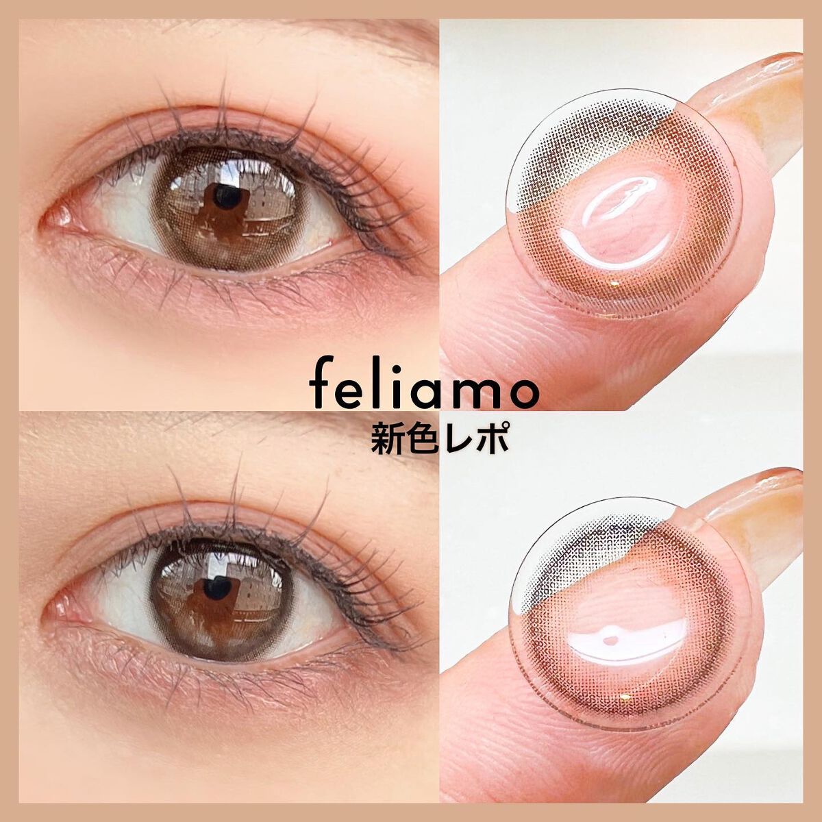 - ※2025年6月以降、商品パッケージ裏面・側面の一部表記を順次変更いたします。尚、これにかかる商品の交換・返品は承っておりません。 どんな瞬間にも溶け込む誰からも愛される瞳へ feliamoの由来は felice amore~幸せな愛~ 瞳から愛されオーラを放つ好印象レンズで女性らしさと品を演出。 オンも、オフも、特別な日も。 どんな場面にも溶け込むレンズラインナップで誰からも愛される瞳に。 UV CUT Feature1 肌や瞳に有害といわれ、白内障などの眼病を引き起こす危険性のある紫外線を99%カットします。(UV-A波75%、UV-B波99%カット) イオン性 Feature1 水分を多く含み酸素を通しやすいため瞳にやさしい使い心地で、快適な装用感です。 高含水 Feature1 水分が多く含むやわらかい素材で、快適なつけ心地です。 レンズ構造 Feature1 まぶた側に着色剤を内包しているため、角膜に色素が触れることがない構造を採用しています。 レンズ形状 Feature1 フチを丸みのある形状にすることで自然な装用感を実現しました。 ※装用感には個人差があります。 カラーコンタクトレンズの不適正使用による眼障害の危険性等などがあります。 ●コンタクトレンズは高度管理医療機器です。不十分な洗浄・消毒など不適切なケアや、長時間・交換期間を超えた装用により、アレルギー性結膜炎、角膜感染症、角膜潰瘍等の重篤な眼障害が発生する危険性があります ●ご使用前に取扱説明書を確認してください 使用上の留意事項 ●眼科医院等を受診してからお求めください ●眼に異常を感じたら直ちにレンズ使用を中止し、お近くの眼科等で診察を受けてください ●医師の指示にしたがってご使用ください ●コンタクトレンズを装用する場合、自覚症状がなくても、眼科医院等での定期検査を受けてください ●レンズに不具合がある場合は使用しないでください