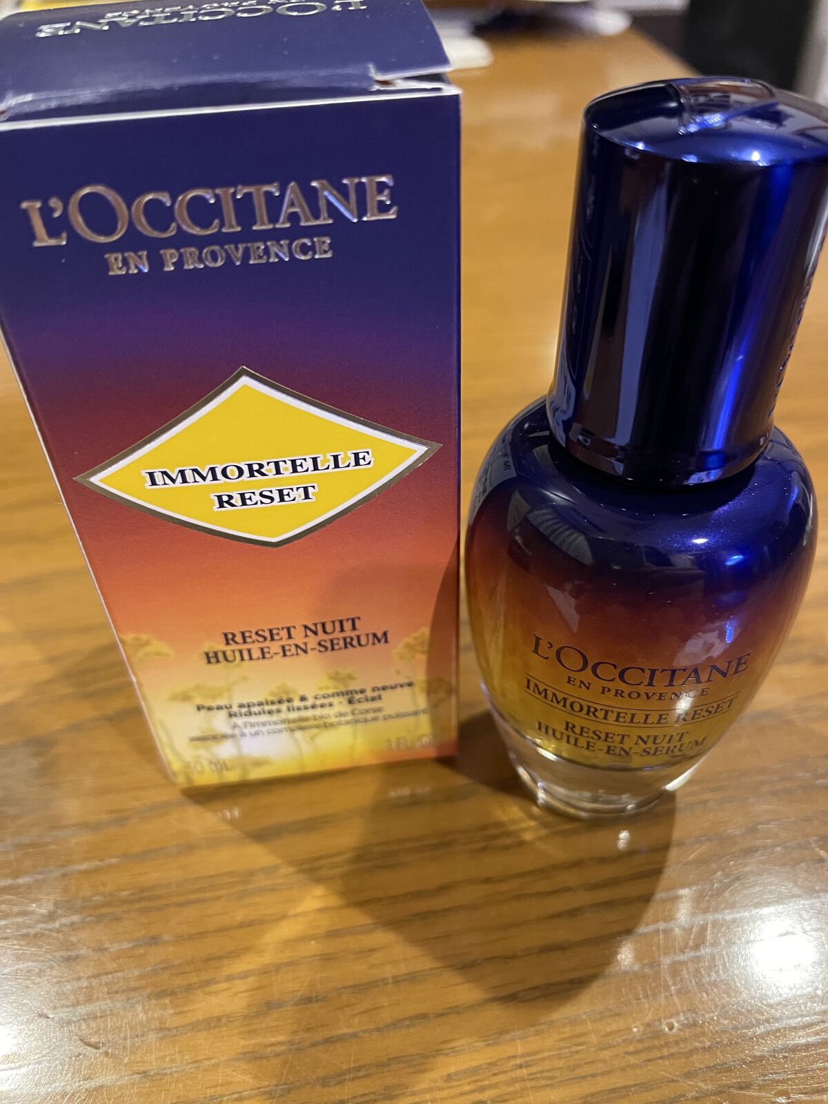 ロクシタンの人気美容液がリニューアル! ボトルの中で輝く黄金のオーガニックのイモーテルエッセンシャルオイルカプセル*使うたびにはじけて新鮮な美容成分を届けてくれるんです。 肌に触れた瞬間、ふわっと広がるイモーテルの香りに贅沢なナイトケアタイムを過ごしているように感じます。 この1本で簡単にプロ級のスキンケアができちゃいます!!
