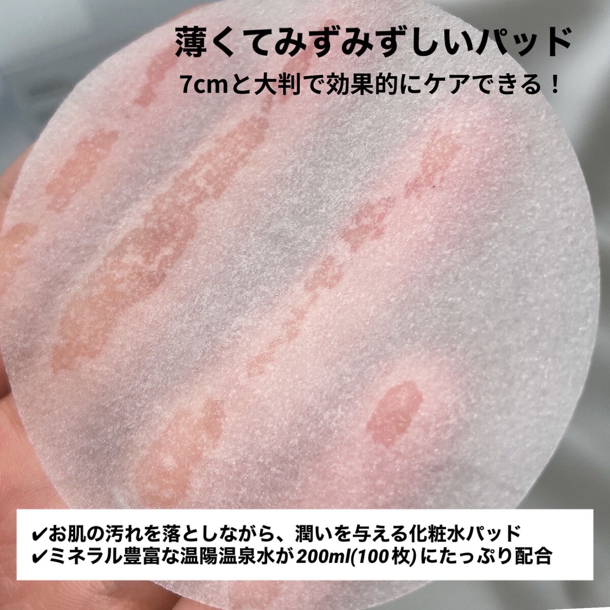 - お肌の汚れを落としながら、潤いを与える化粧水パッド。温陽温泉水が200ml(100枚)にたっぷり詰まっており、お肌を健やかに保ち、整えてくれます。