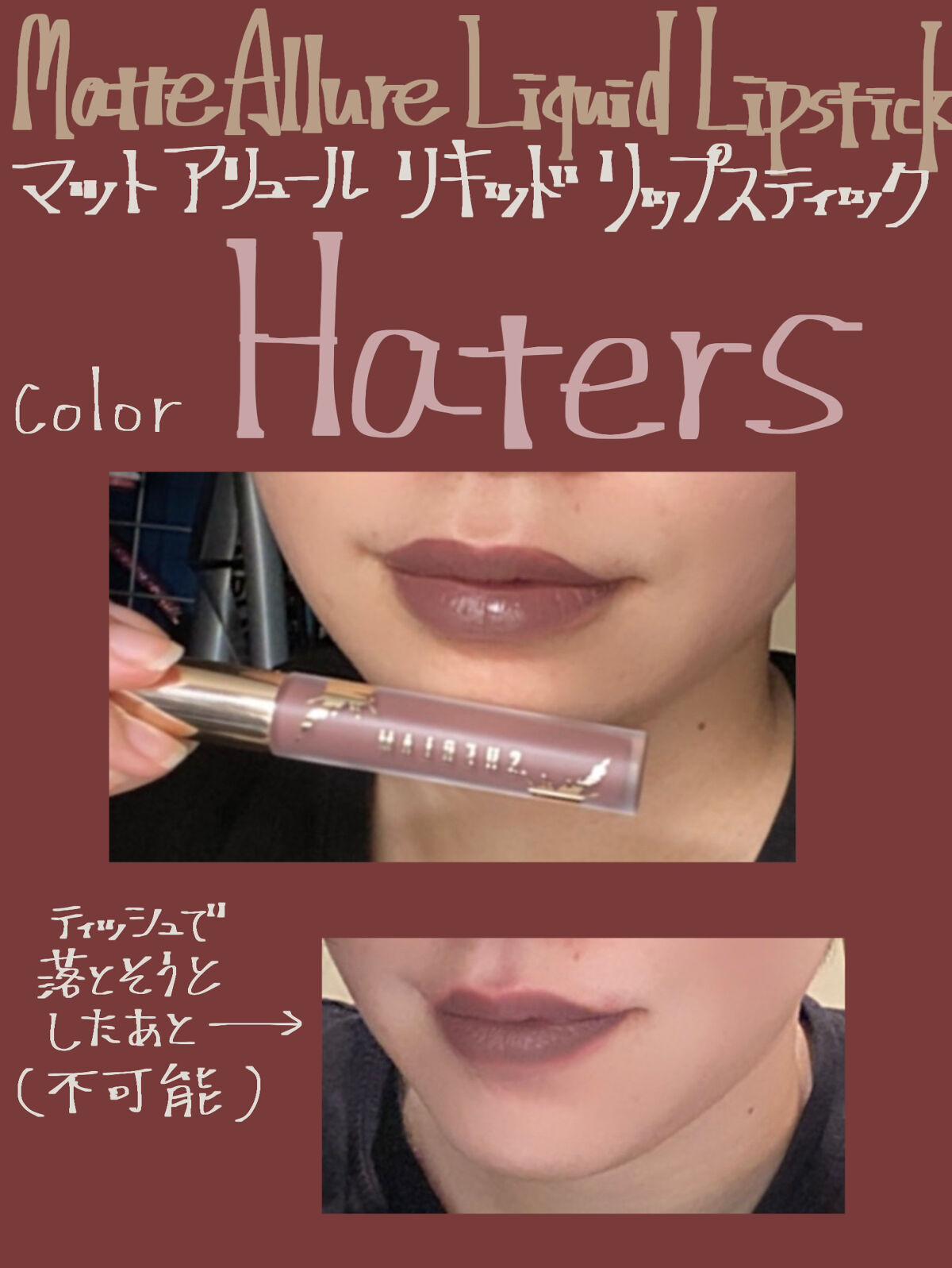 他にもたくさん候補はあったのですが、人を選ばないカラーだというレビューをたくさん見たのでこの色に決定🔥 色味は季節、場面問わず使えそうで、特に秋冬は活躍しそうです♡ 色持ちは個人的には微妙かな…と思いました 飲食すると絶対に落ちてしまうので塗り直し必須です リップの保湿もマストです!