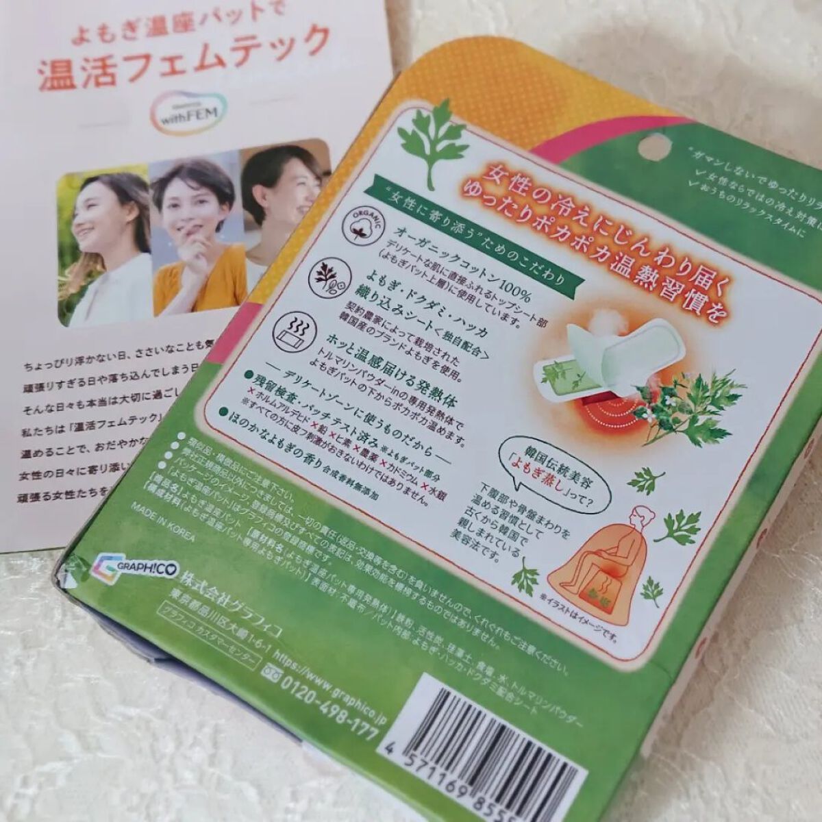 商品詳細情報グラフィコ ウィズフェム よもぎ温座パットオーガニック