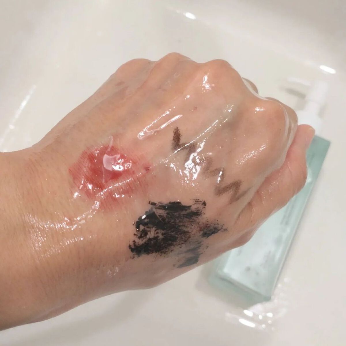 密着してふわっと発色 アイシャドウ下地としてはもちろん、チークにも◎ 03はほんのりくすみの白みピンク 瞼に使うと血色の悪さをカバーしてトーンアップしてくれるからいつもより二重の幅が強調されるように見えて良い くすみ肌の私は03をチークにしても使えた!明るめの肌やくすみのない肌の人は顔色悪く見えてしまうので注意⚠ よく伸びるので少しずつ出して使ってます 水で擦っても落ちにくかった ハンドソープでゴシゴシ洗ってやっと落ちるくらい 二重にたまらないしヨレないところも推せる 何本か買って、好みの色に混ぜても良さそう