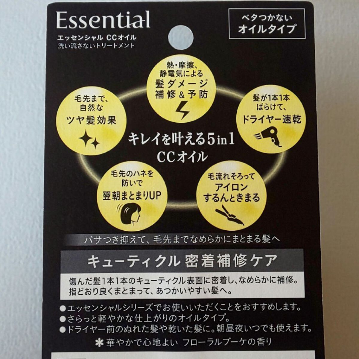 乾燥知らずのサラ艶髪へ!キューティクルケアオイル✨花王エッセンシャルCCオイル濡れた髪にも乾いた髪にも朝昼夜使えちゃう万能オイル!ダメージケアはもちろん、1本で様々な効果が期待されます。オイルなのにベタつかないのが本当にポイント高いです!画像...