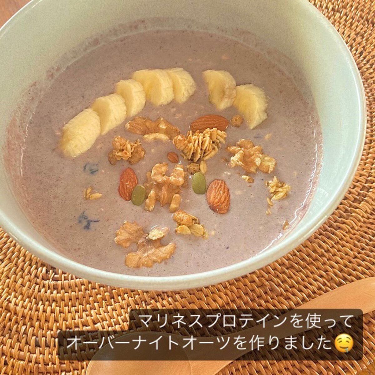 私の大好きなマリネスのプロテイン! プロテインはマリネス!な我が家は今までバナナ、チョコ、ブルーベリーヨーグルト、抹茶ラテ、ロイヤルミルクティー、黒ゴマきなこほぼ全制覇するんじゃないかくらいリピートしています🥰 甘みの中に、少し酸味も感じられるので甘ったるくなく、くどくないから飲みやすい🙆♀️ マリネスのいいところは溶けやすいこと!粉っぽさがなく良き◎腹持ちの良さも◎置き換えしたい人にもいい🙌