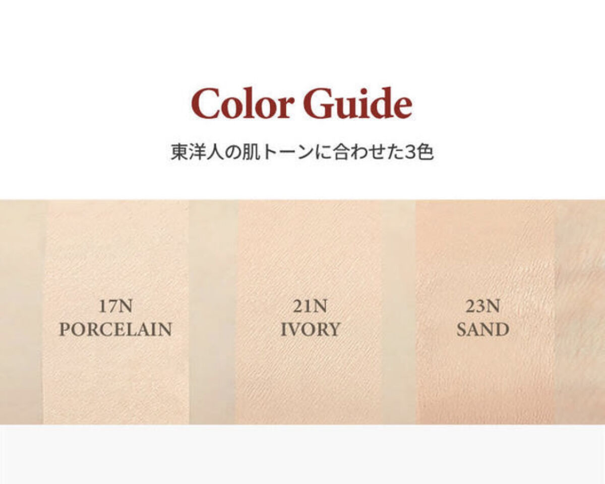 - <17C ポーセリン> 水、シクロペンタシロキサン、酸化チタン、トリメチルシロキシケイ酸、プロパンジオール、ジフェニルシロキシフェニルトリメチコン、メチルトリメチコン、ナイアシンアミド、PEG-10ジメチコン、ジメチコン、イソドデカン、酸化鉄、ポリグリセリル-3ポリジメチルシロキシエチルジメチコン、PEG/PPG-18/18ジメチコン、1,2-ヘキサンジオール、硫酸Mg、オクチルドデカノール、ジステアルジモニウムヘクトライト、水酸化Al、ステアリン酸、ポリヒドロキシステアリン酸、トリエトキシカプリリルシラン、アルミナ、ソルビン酸K、イソステアリン酸ポリグリセリル-4、香料、ジエチルヘキサン酸ネオペンチルグリコール、トリイソステアリン酸イソプロピルチタン、アデノシン、エチレンジアミンジコハク酸3Na、ポリメタクリル酸メチル、ヘマトコッカスプルビアリス油、BG、グリセリン、DPG、パルミトイルプロリンNa、(セテアリルジメチコン/ビニルジメチコン)クロスポリマー、ハイビスカスエキス、アスタキサンチン、ハマナスエキス、パンクラチウムマリチムムエキス、ニンファエアアルバ花エキス、プロポリスエキス <21N アイボリー> 水、シクロペンタシロキサン、酸化チタン、トリメチルシロキシケイ酸、プロパンジオール、ジフェニルシロキシフェニルトリメチコン、メチルトリメチコン、ナイアシンアミド、PEG-10ジメチコン、ジメチコン、イソドデカン、酸化鉄、ポリグリセリル-3ポリジメチルシロキシエチルジメチコン、PEG/PPG-18/18ジメチコン、1,2-ヘキサンジオール、硫酸Mg、オクチルドデカノール、ジステアルジモニウムヘクトライト、水酸化Al、ステアリン酸、ポリヒドロキシステアリン酸、トリエトキシカプリリルシラン、アルミナ、ソルビン酸K、イソステアリン酸ポリグリセリル-4、香料、ジエチルヘキサン酸ネオペンチルグリコール、トリイソステアリン酸イソプロピルチタン、アデノシン、エチレンジアミンジコハク酸3Na、ポリメタクリル酸メチル、ヘマトコッカスプルビアリス油、BG、グリセリン、DPG、パルミトイルプロリンNa、(セテアリルジメチコン/ビニルジメチコン)クロスポリマー、ハイビスカスエキス、アスタキサンチン、ハマナスエキス、パンクラチウムマリチムムエキス、ニンファエアアルバ花エキス、プロポリスエキス <23N サンド> 水、シクロペンタシロキサン、酸化チタン、トリメチルシロキシケイ酸、プロパンジオール、ジフェニルシロキシフェニルトリメチコン、メチルトリメチコン、ナイアシンアミド、PEG-10ジメチコン、ジメチコン、イソドデカン、酸化鉄、ポリグリセリル-3ポリジメチルシロキシエチルジメチコン、PEG/PPG-18/18ジメチコン、1,2-ヘキサンジオール、硫酸Mg、オクチルドデカノール、ジステアルジモニウムヘクトライト、水酸化Al、ステアリン酸、ポリヒドロキシステアリン酸、トリエトキシカプリリルシラン、アルミナ、ソルビン酸K、イソステアリン酸ポリグリセリル-4、香料、ジエチルヘキサン酸ネオペンチルグリコール、トリイソステアリン酸イソプロピルチタン、アデノシン、エチレンジアミンジコハク酸3Na、ポリメタクリル酸メチル、ヘマトコッカスプルビアリス油、BG、グリセリン、DPG、パルミトイルプロリンNa、(セテアリルジメチコン/ビニルジメチコン)クロスポリマー、ハイビスカスエキス、アスタキサンチン、ハマナスエキス、パンクラチウムマリチムムエキス、ニンファエアアルバ花エキス、プロポリスエキス <17C ポーセリン ミニ> 水、シクロペンタシロキサン、酸化チタン、トリメチルシロキシケイ酸、プロパンジオール、ジフェニルシロキシフェニルトリメチコン、メチルトリメチコン、ナイアシンアミド、PEG-10ジメチコン、ジメチコン、イソドデカン、酸化鉄、ポリグリセリル-3ポリジメチルシロキシエチルジメチコン、PEG/PPG-18/18ジメチコン、1,2-ヘキサンジオール、硫酸Mg、オクチルドデカノール、ジステアルジモニウムヘクトライト、水酸化Al、ステアリン酸、ポリヒドロキシステアリン酸、トリエトキシカプリリルシラン、アルミナ、ソルビン酸K、イソステアリン酸ポリグリセリル-4、香料、ジエチルヘキサン酸ネオペンチルグリコール、トリイソステアリン酸イソプロピルチタン、アデノシン、エチレンジアミンジコハク酸3Na、ポリメタクリル酸メチル、ヘマトコッカスプルビアリス油、BG、グリセリン、DPG、パルミトイルプロリンNa、(セテアリルジメチコン/ビニルジメチコン)クロスポリマー、ハイビスカスエキス、アスタキサンチン、ハマナスエキス、パンクラチウムマリチムムエキス、ニンファエアアルバ花エキス、プロポリスエキス <21N アイボリー ミニ> 水、シクロペンタシロキサン、酸化チタン、トリメチルシロキシケイ酸、プロパンジオール、ジフェニルシロキシフェニルトリメチコン、メチルトリメチコン、ナイアシンアミド、PEG-10ジメチコン、ジメチコン、イソドデカン、酸化鉄、ポリグリセリル-3ポリジメチルシロキ