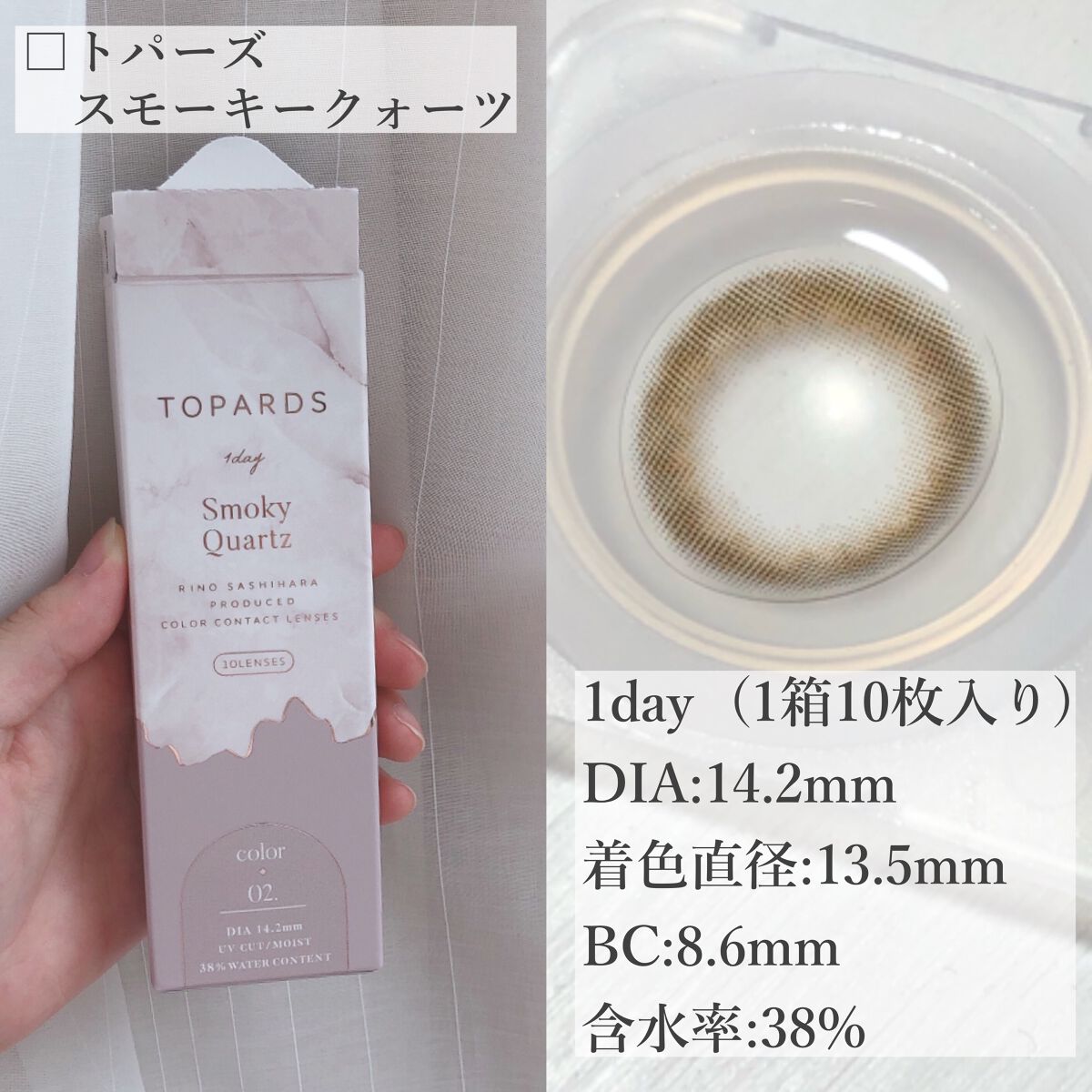 - ※2025年6月以降、商品パッケージ裏面・側面の一部表記を順次変更いたします。尚、これにかかる商品の交換・返品は承っておりません。 ■UVカット 紫外線を99%カットします。 ※UV-A波75%、UV-B波99%カット ■低含水 長時間の装用を考えた、レンズ自体に必要な水分が少ない低含水レンズです。※使用時間には個人差がありますので必ず眼科医の指導に従って下さい。 ■レンズ構造 着色剤がポリマー層によりレンズ内に包埋しています。 ■ 非イオン性レンズ 汚れが付きにくく視界をクリアに保ち、快適さが持続します。※装用感には個人差があります。 ■レンズ形状レンズ形状 フチに丸みをつけより快適な着け心地を目指しました。 Moon Melt Brown(ムーンメルトブラウン) とろける甘さのブラウンカラーに月の光を散りばめた、きらめき水光レンズ。 Cat Pearl(キャットパール) くっきり細フチでまんまるな印象の瞳♡きゅるんと子猫っぽグレーレンズ。 Jelly Quartz(ゼリークォーツ) ぼかし細フチでぷるんと輝くような瞳に、毎日使いたくなる引き算大人盛れレンズ。 カラーコンタクトレンズの不適正使用による眼障害の危険性等などがあります。 ●コンタクトレンズは高度管理医療機器です。不十分な洗浄・消毒など不適切なケアや、長時間・交換期間を超えた装用により、アレルギー性結膜炎、角膜感染症、角膜潰瘍等の重篤な眼障害が発生する危険性があります ●ご使用前に取扱説明書を確認してください 使用上の留意事項 ●眼科医院等を受診してからお求めください ●眼に異常を感じたら直ちにレンズ使用を中止し、お近くの眼科等で診察を受けてください ●医師の指示にしたがってご使用ください ●コンタクトレンズを装用する場合、自覚症状がなくても、眼科医院等での定期検査を受けてください ●レンズに不具合がある場合は使用しないでください