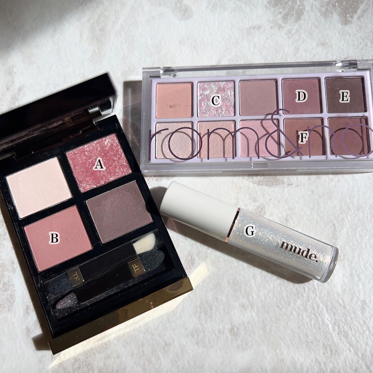#いつかのメイクトムフォードインソレントローズインソレントローズは可愛らしい色合いなのに、右下のパープルが大人なくすみパープルだから甘くなりすぎないのが好き。チーク、ハイライトOSAJIことづてエレガンススリークフェイスNPK107リップエレ...