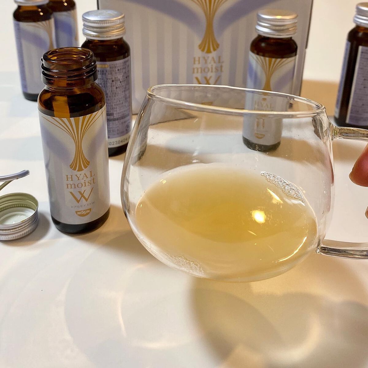 世界で唯一、“ヒアルロン酸を作らせる機能が特許として認められた 日清食品独自の「ヒアルモイスト乳酸菌」を、従来品に比べて5倍以上も贅沢に配合した美容ドリンク♡ 毎日飲みたくなるおいしい味わいはそのままに、カロリーは従来品と比べて40%カットした27kcal(1本あたり) しかもドリンクだから全身に行き渡るからフェイスマスクより効率的!