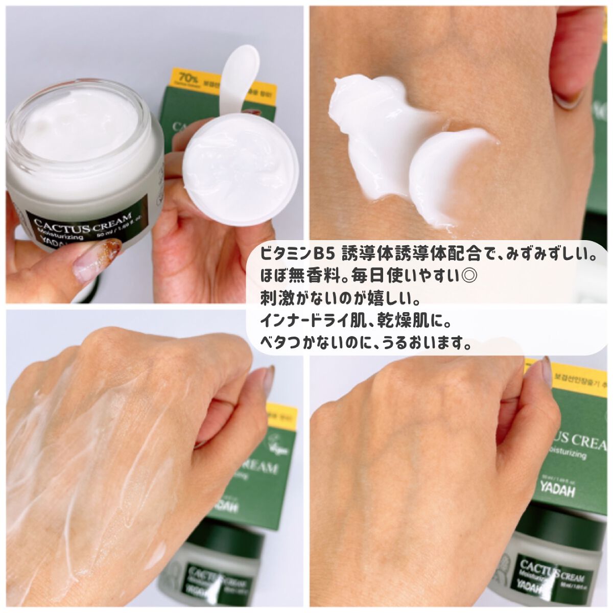 ☑︎サボテンエキス70%配合 ☑︎肌に優しい28種類の成分のみ配合 ☑︎肌バリア機能を高めてくれるパンテノール配合 ☑︎保湿と鎮静ケアを両立させたみずみずしいテクスチャーのクリーム ベタつきもなく、パンテノール配合で敏感なときにでも使いやすいので、肌質、季節問わず使えそうなクリーム🌵 こちらはほんのり香りがついていましたが、気にならない程度でした♪