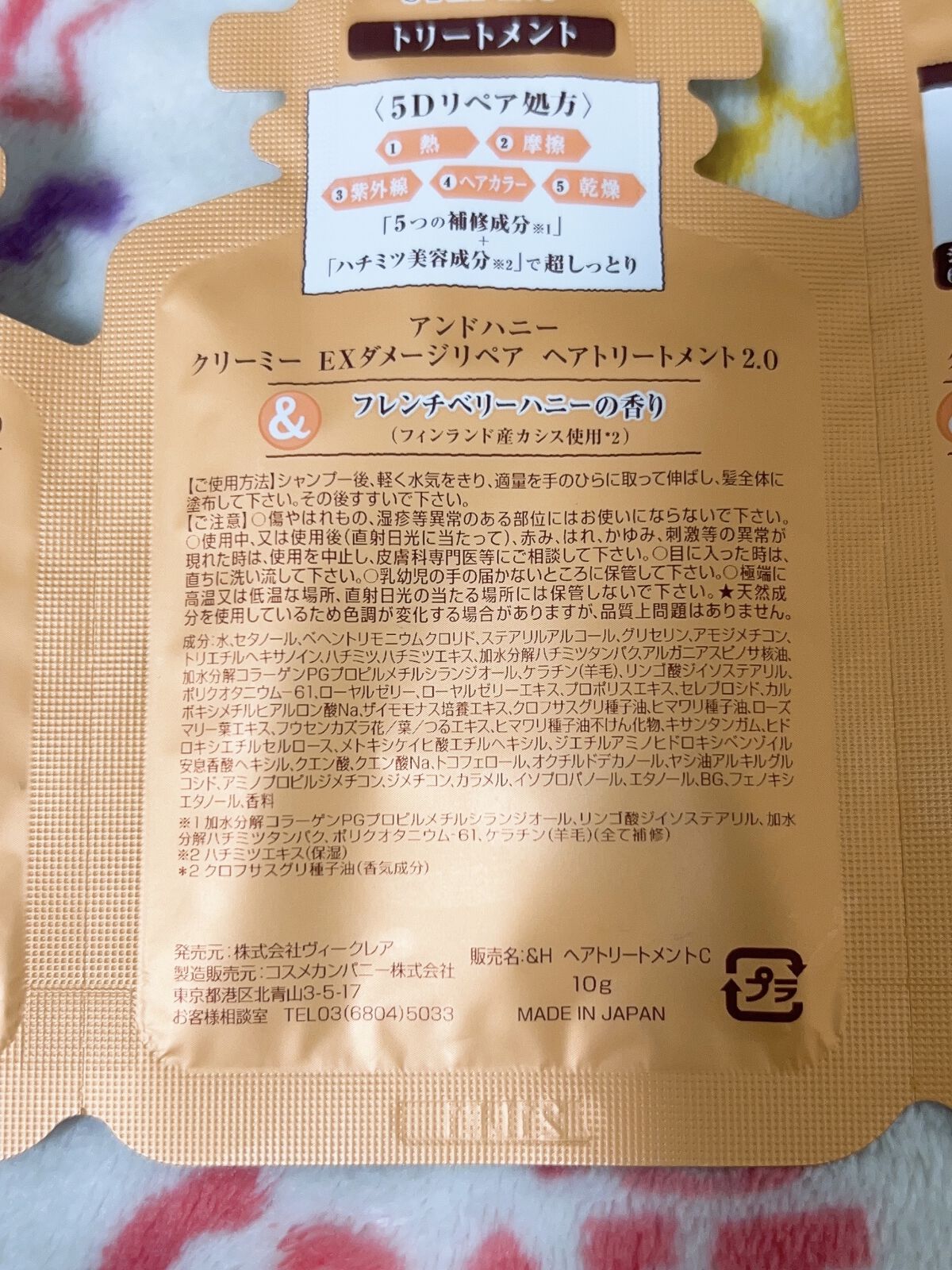 &honeyCreamyEXダメージリペアシャンプー1.0ヘアトリートメント2.0【詰替用】アエナで2つ合わせて、約800円ほどで購入しました!●シャンプーモッタリとした重めのテクスチャです。甘い香りがするので、最初は少しキツかったです。持続...