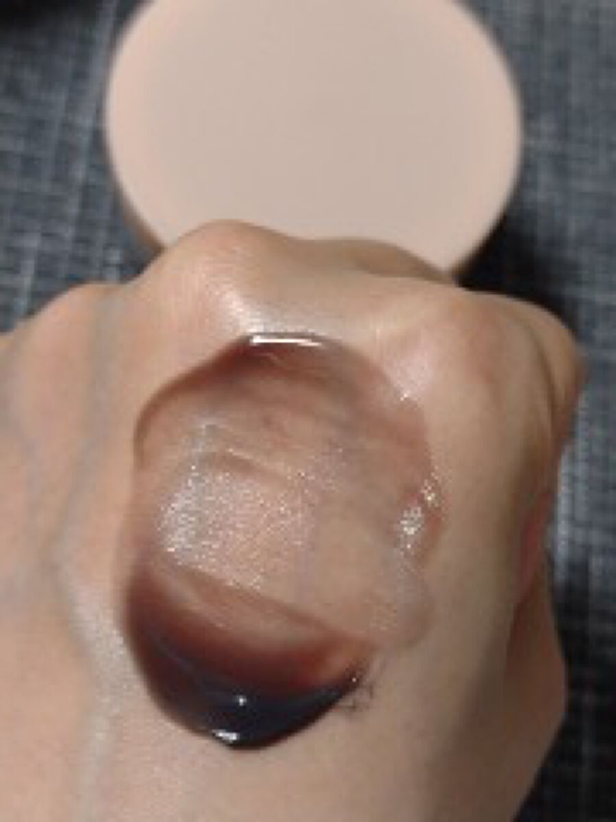 中身は、さらっとなめらかなテクスチャー。ほんのりピンクがかったベージュ系のようなカラー。のびがよく、しっとりとした使用感です。べたつきにくく、なじませやすい印象です。豆腐のなめらかなくちあたりをイメージするような使い心地でしょうか。(個人の体...