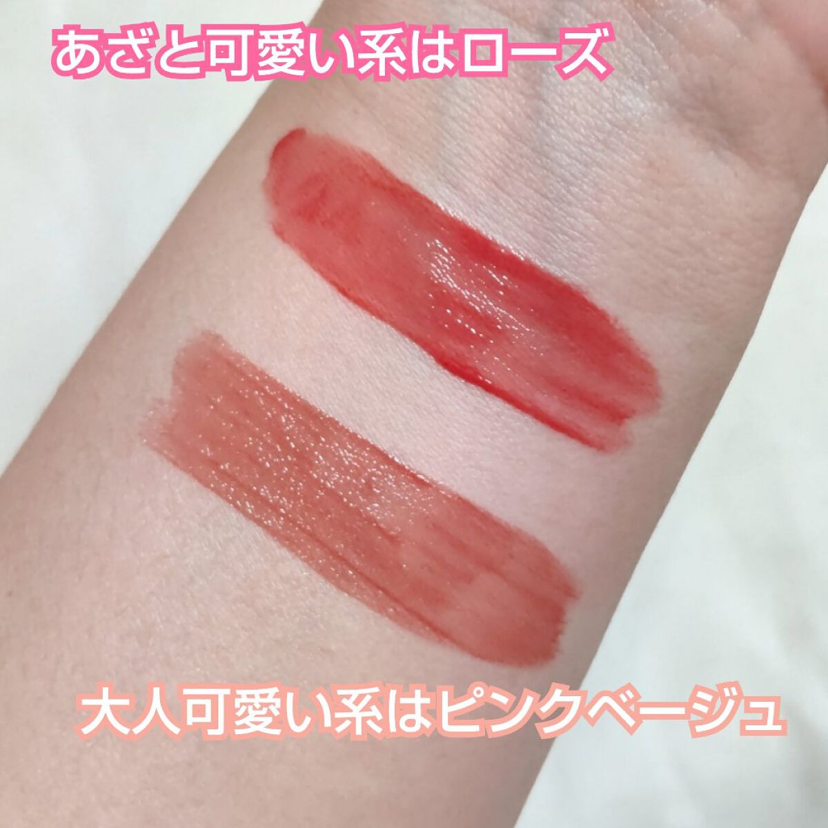 可愛いのに甘すぎないピンクで 大人でも使いやすくて 真ん中のカラーは、くすみピンクで ナチュラルで可愛いです✨ 右のカラーは、赤みのあるブラウンで 柔らかい発色で濃くないので 使いやすかったです🤗