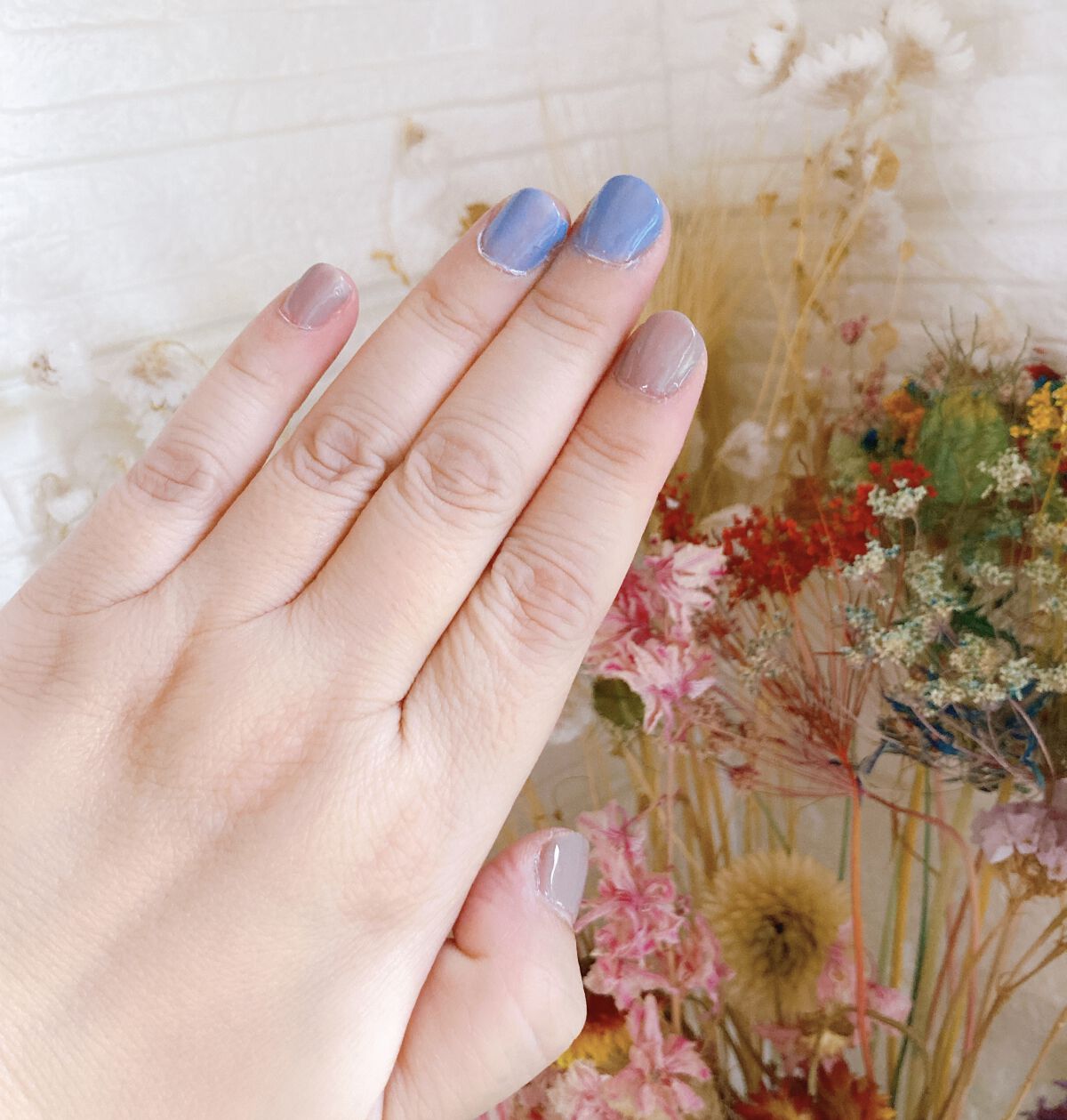 剥がしてオフできるオールインワンジェルネイルで超簡単にお洒落な秋ネイルができた…🍁❣️ 2023年年間売上店頭2位・WEB3位と特に人気なモカベリーカラー。 オフも専用のものなど必要なく、爪で剥がすだけなので楽ちんでした🙂↕️