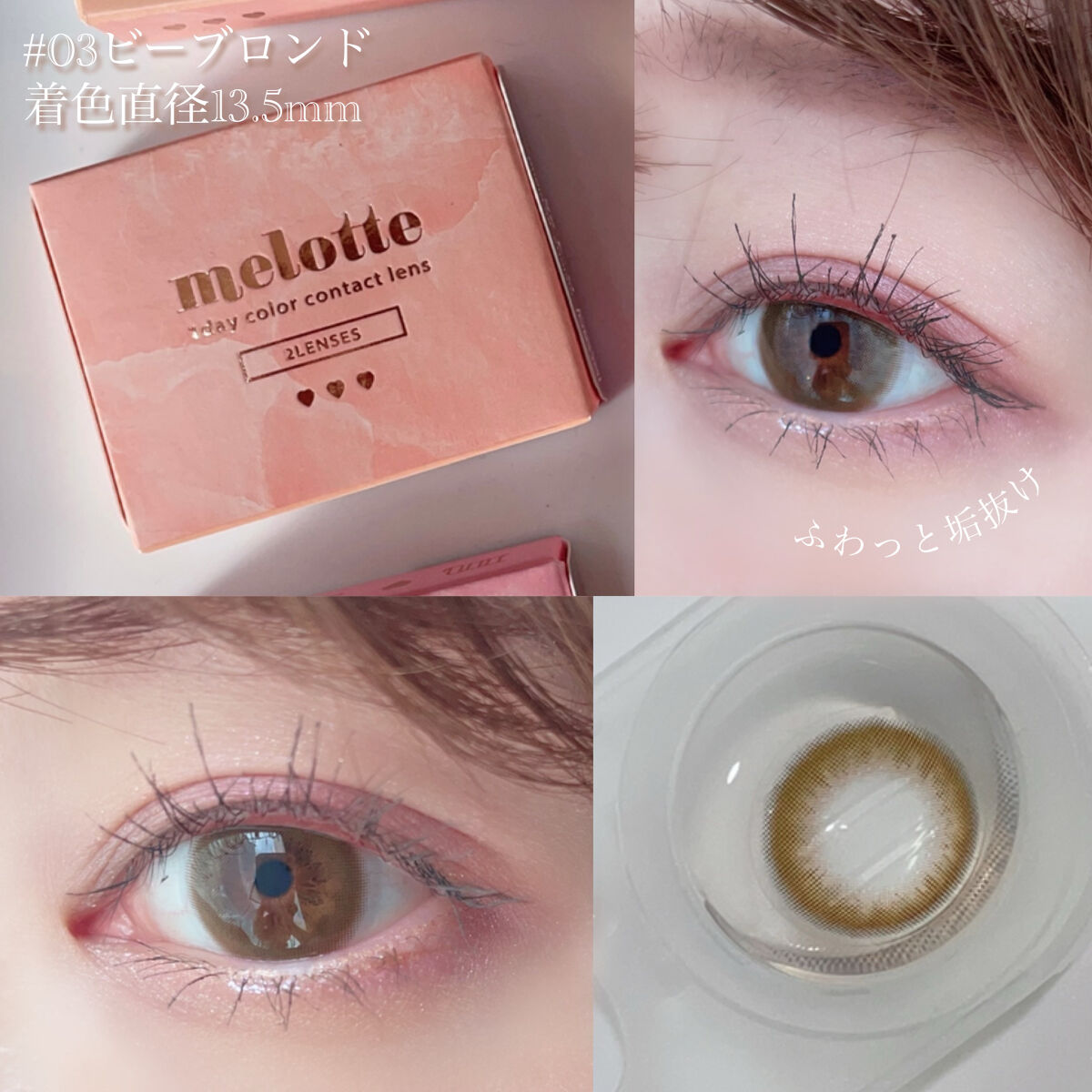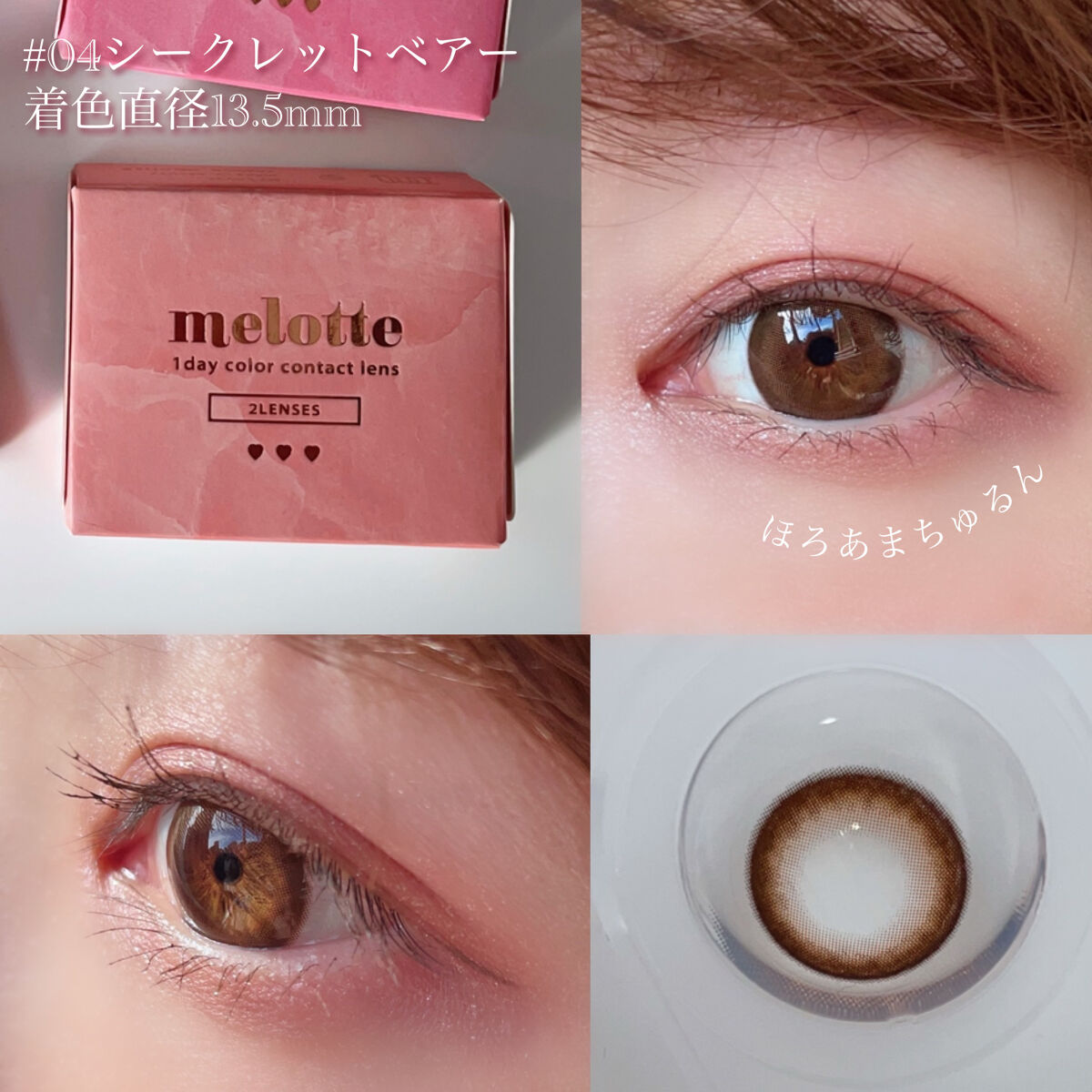 melotteメロット 1dayロマンティックローズ¥1,793DIA14.2mmBC8.6mm着色直径13.3mm含水率38%UVカット✔︎ほんのりローズの色味♡✔︎ナチュラルで使いやすいデザイン♡✔︎サイズは少し大きめだと思う。ローズの色...