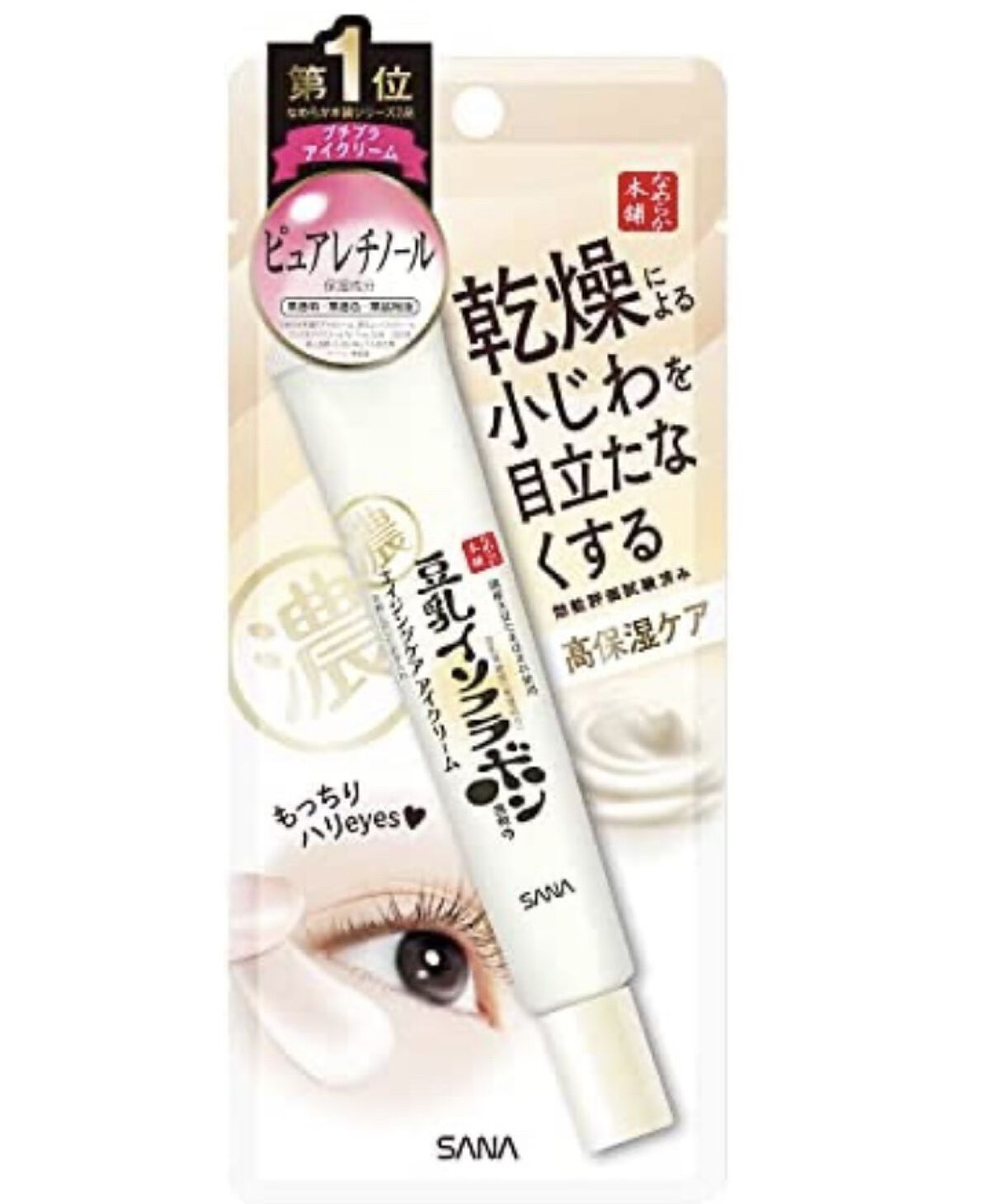 - ピュアレチノール※を新配合!濃厚アイクリームでもっちりハリeyes ※ 保湿成分 「リンクルアイクリーム N」は、『なめらか本舗』オリジナルの豆乳発酵液*1に加え、ピュアレチノール*1とビタミンE誘導体*2を新配合したもっちりとしたハリのある目元に導く「アイクリーム」です。 密着ポリマーがお肌の上で均一な膜を形成し、目元のハリ感をサポート。 毎日のスキンケアに取り入れていただくことで、年齢の出やすい目元をしっかりケアします。 〔①ピュアレチノール*1×豆乳発酵液*1×ビタミンE誘導体*2配合〕 「なめらか本舗」オリジナルのイソフラボン含有の豆乳発酵液*1に加え、ピュアレチノール*1を新配合。 さらに、ビタミンE誘導体(TPNaⓇ)*2も配合し、年齢の出やすい目元をしっかりケアします。 ・ピュアレチノール:ビタミンAの一種でハリのある目元に! ・豆乳発酵液:弾力感・うるおいを与えふっくらした目元に! ・ビタミンE誘導体(TPNaⓇ):お肌にぐんぐん浸透*3してイキイキした目元に! 〔②密着ポリマーで目元にハリ感〕 密着ポリマーがお肌の上で均一な膜を形成します。もっちりとハリのある目元に導きます。 *1 保湿成分 *2 トコフェリルリン酸Na(保湿成分) *3 角層まで