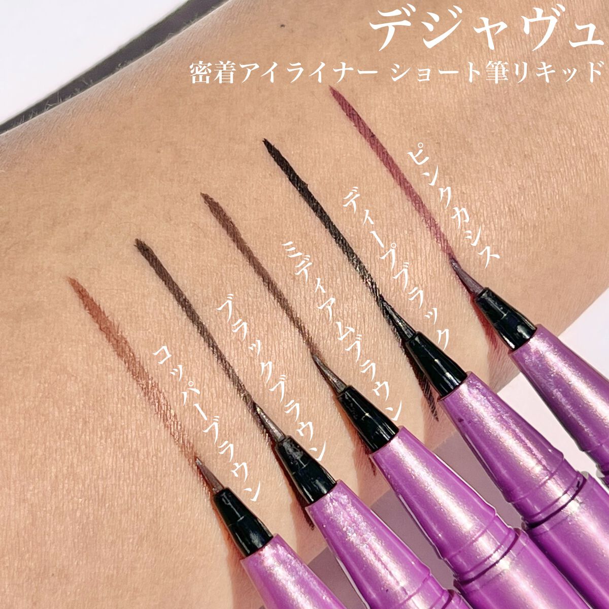 💜dejavuラスティンファインEショート筆リキッドミディアムブラウン💜筆先が“5mmのショート筆”で、筆が長すぎずしなりにくいため、安定して極細ラインが描けるよう設計されていてブレずに狙ったラインが描きやすいアイライナーです☺️皮脂・汗・涙...