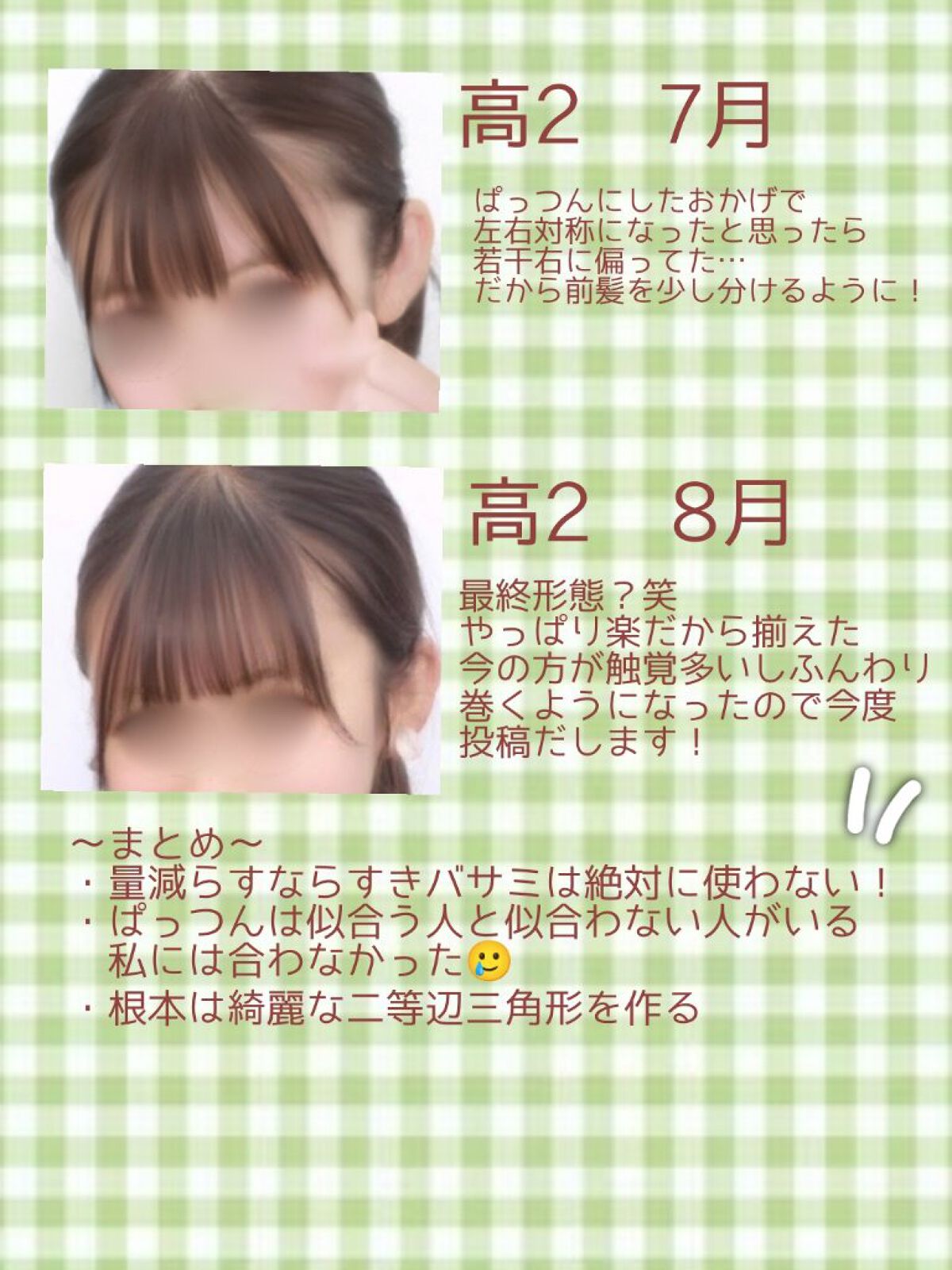 こんにちは!!今回は私の3年間の前髪成長記録をご紹介します!まず、私はとにかく髪の量が本当に多い!(美容師さんに毎回びっくりされるほど)それにくせっ毛、、、でした←大事私が1番最初に垢抜けよう?と思もったのは前髪でした!とにかく前髪の量を減ら...