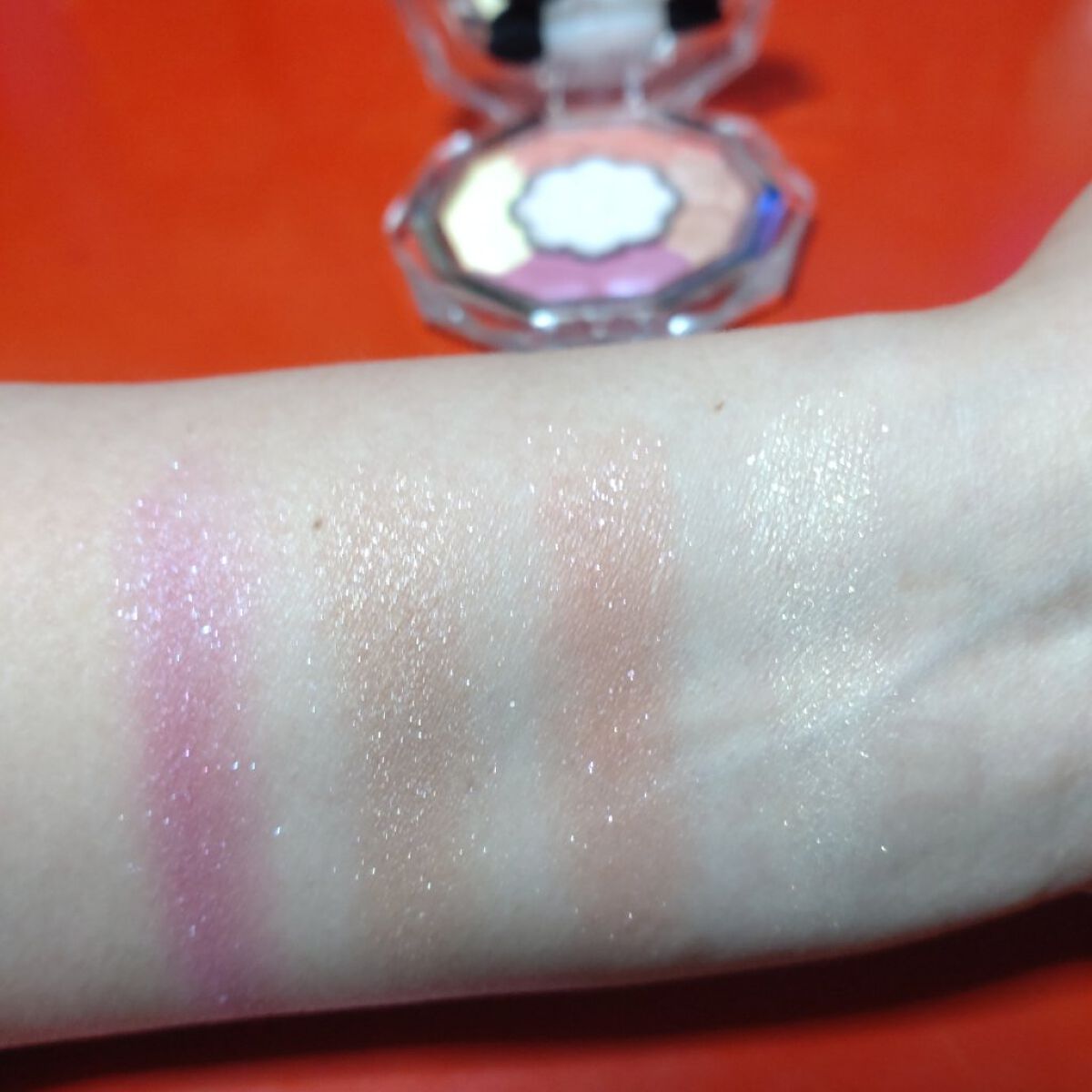 プチプラのクオリティじゃないっ!! 発売前からチェックしていたけれど、ここまで可愛いとは…😆 絶妙カラーで目もとのくすみを飛ばして*明るい印象に🩷 横割りグラデーションでメイクし、立体感をより出したかったので最後に1番左のカラーを上まぶたの真ん中と涙袋にのせています🙆 肌馴染みも良くて粉飛びも感じにくかったです💕 ブラウンの方も店頭に出てたら買おうかな💓