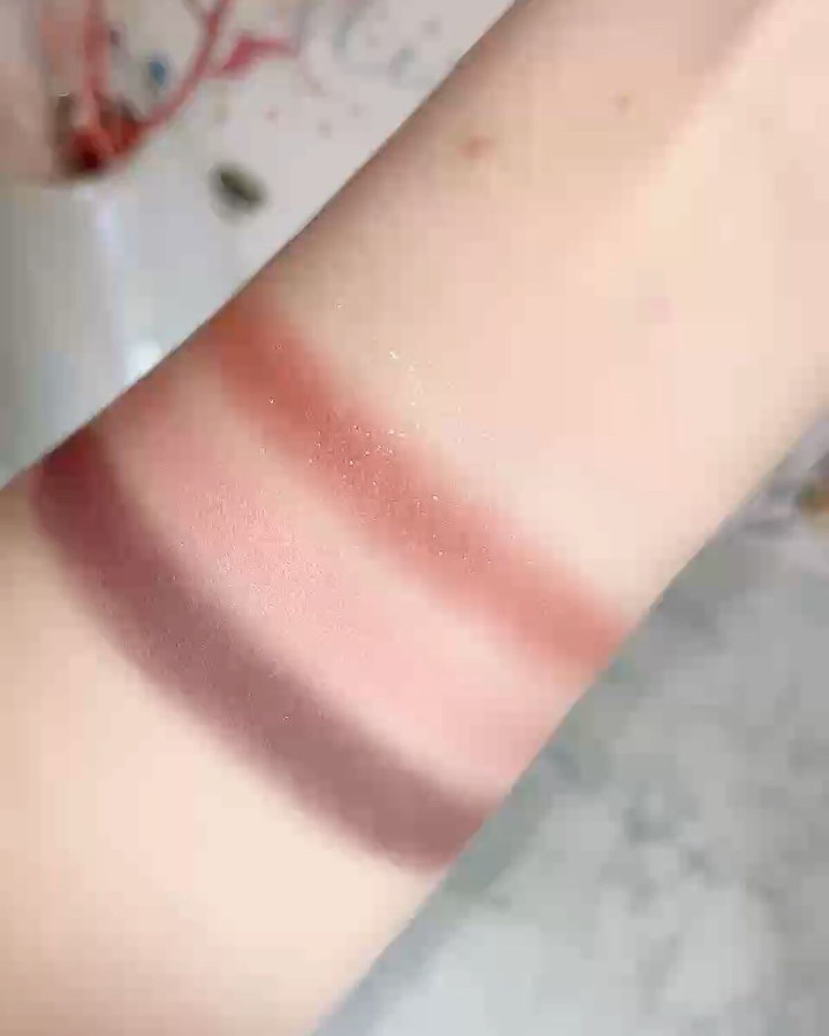 本当にヨレないので ヨレやすい涙袋メイクに向いています✨ 擦れだけじゃなく、水にも強かった!!😍 スウォッチだと2色全然違うんだけど メイクしら違いが分かりません🙊笑