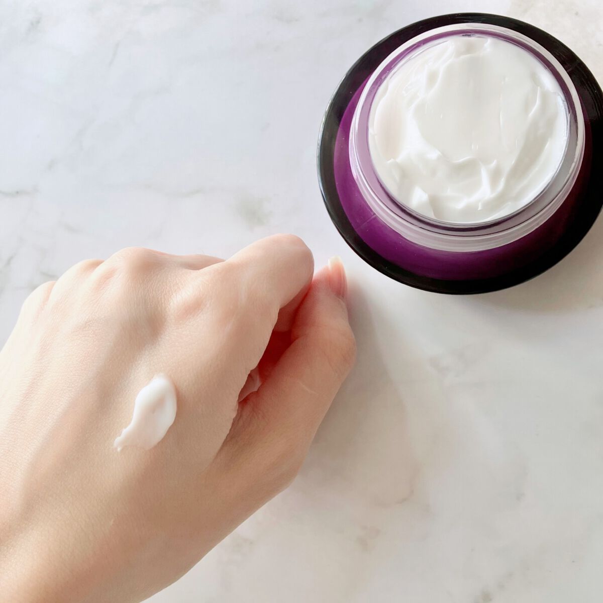 1兆個のナイトカプセルが肌をかけめぐり、濃密なハリ・ツヤ・弾力を与える 『睡眠不足でも3時間多く眠ったような肌へ』 テクスチャーは柔らかめで伸びもよく肌にスッと馴染みます!
