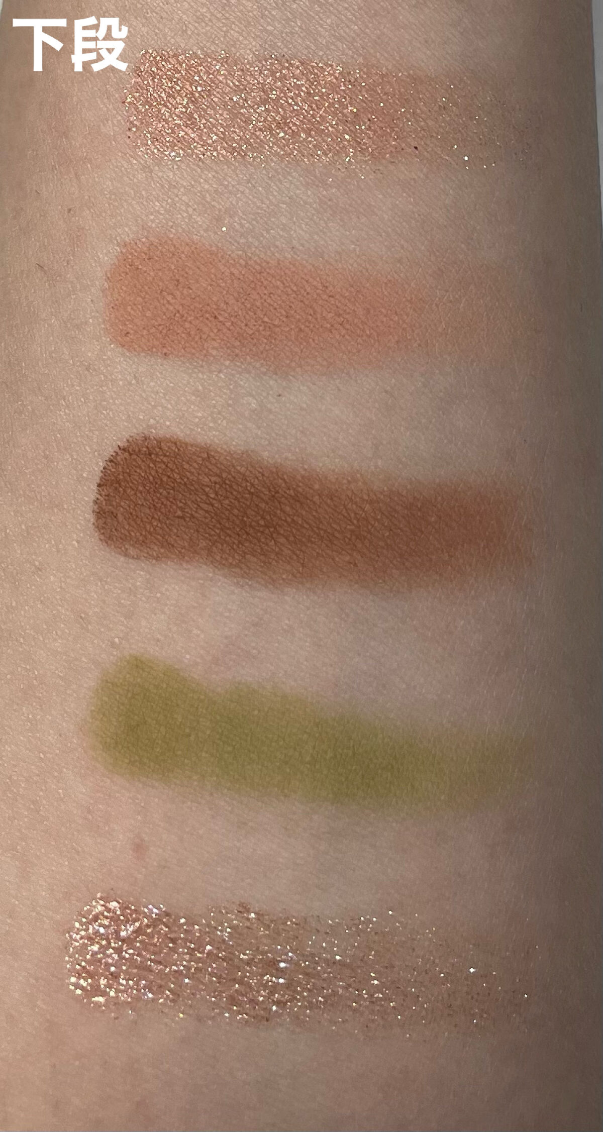 hince ニューデップスアイシャドウパレット03 ライク・ア・シーン マット5色、サテン2色、シアー1色、グリッター2色の10色構成で、色味も質感も様々でいろんなメイクが楽しめます✨特にイエベさんにおすすめ マットの粉質はかなり柔らかく発色も良い方だと思います。アクセントとなる抹茶色は淡い発色なのでカラーメイク初心者さんでも使いこなせそう! サテンの2色はラメが控えめでお上品な感じが出ます。 シアーは発色が控えめ!よく見ると紫や黄色のラメが入ってます。 グリッターも粉質が柔らかめで指で塗った方が良いと思います。特に下段右端のグリッターはかなりしっとりしているので、濡れ感が出て可愛いです!! hinceはパッケージも可愛くて持っているだけでテンション上がります!