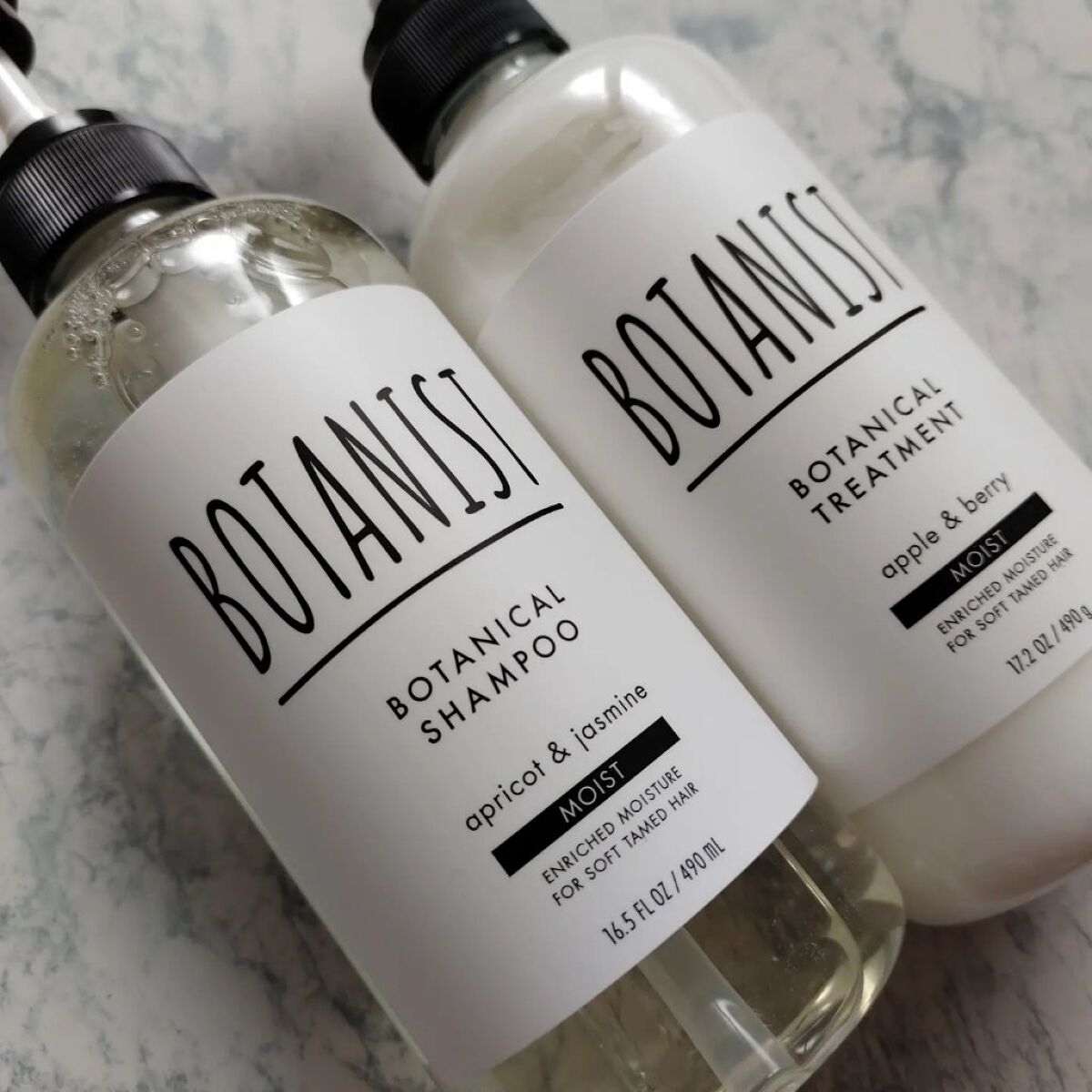 - リニューアル発売 しっとりまとまる髪へ シャンプー:アプリコットとジャスミンの香り トリートメント:アップルとベリーの香り BOTANISTらしい白と黒のロゴを生かし、よりクリーンでシンプルなデザイン 非常に細かい粒子の植物由来たんぱく質【ボタニカルマイクロプロテイン[*1]】を新配合し、今まで届かなかった髪の内部まで浸透しダメージを補修。なめらかでツヤやかな髪へと導きます。 *1加水分解野菜タンパク(毛髪補修成分) □こだわりの植物由来成分配合 □やさしい弱酸性のせっけん系成分を配合 □ダブルフレグランスを採用 □天然の洗浄剤とも言われるソープナッツ [*8]やサボンソウ [*9]を配合 □シリコンフリー(トリートメント:モイスト、スムース、ダメージケアを除く)、合成着色料フリー リニューアルで更にフリー項目追加:パラベンフリー、サルフェートフリー(シャンプーのみ)