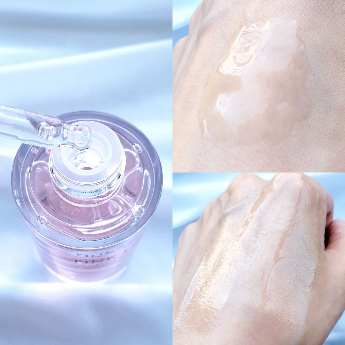 可愛い見た目だけじゃない! 鎮静ケア成分配合の保湿セラムをお試しさせていただきました♡ このピンク色は自然成分であるビタミンB12によるもので、着色料不使用とのことです😳💗 保湿成分のティーツリーやツボクサ成分(CICA)が入っていて、乾燥からの肌荒れに鎮静ケアをしてくれます🤲🏻