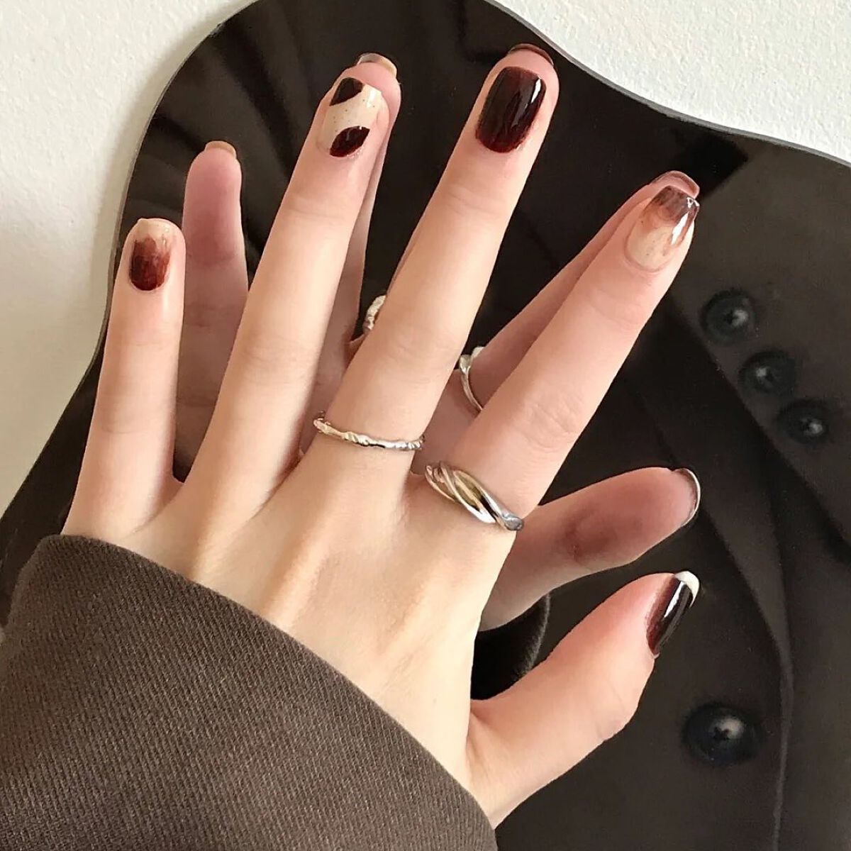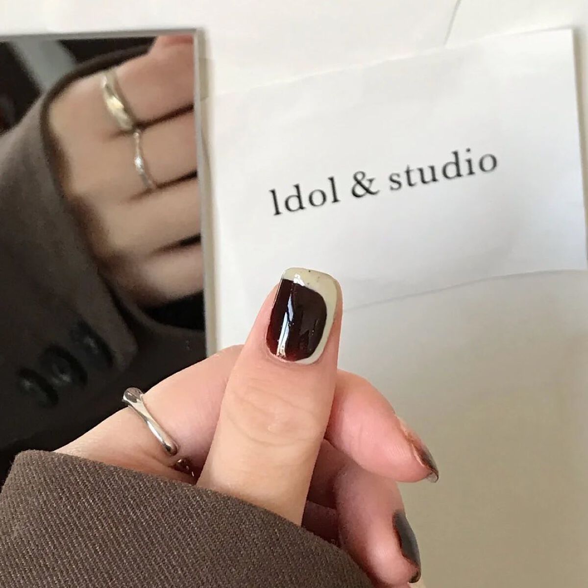 爪に秋のお迎え🍂🤍2022AWトレンドカラー☕️ダークなコーヒー豆の色にまろやかなるミルクカラーこの秋冬長く使えるカラーバリューの一つ🤭#ネイル#秋ネイル#チェックネイル#マットネイル#マットコート#オレンジネイル#ブラウンネイル#テラコッタ...