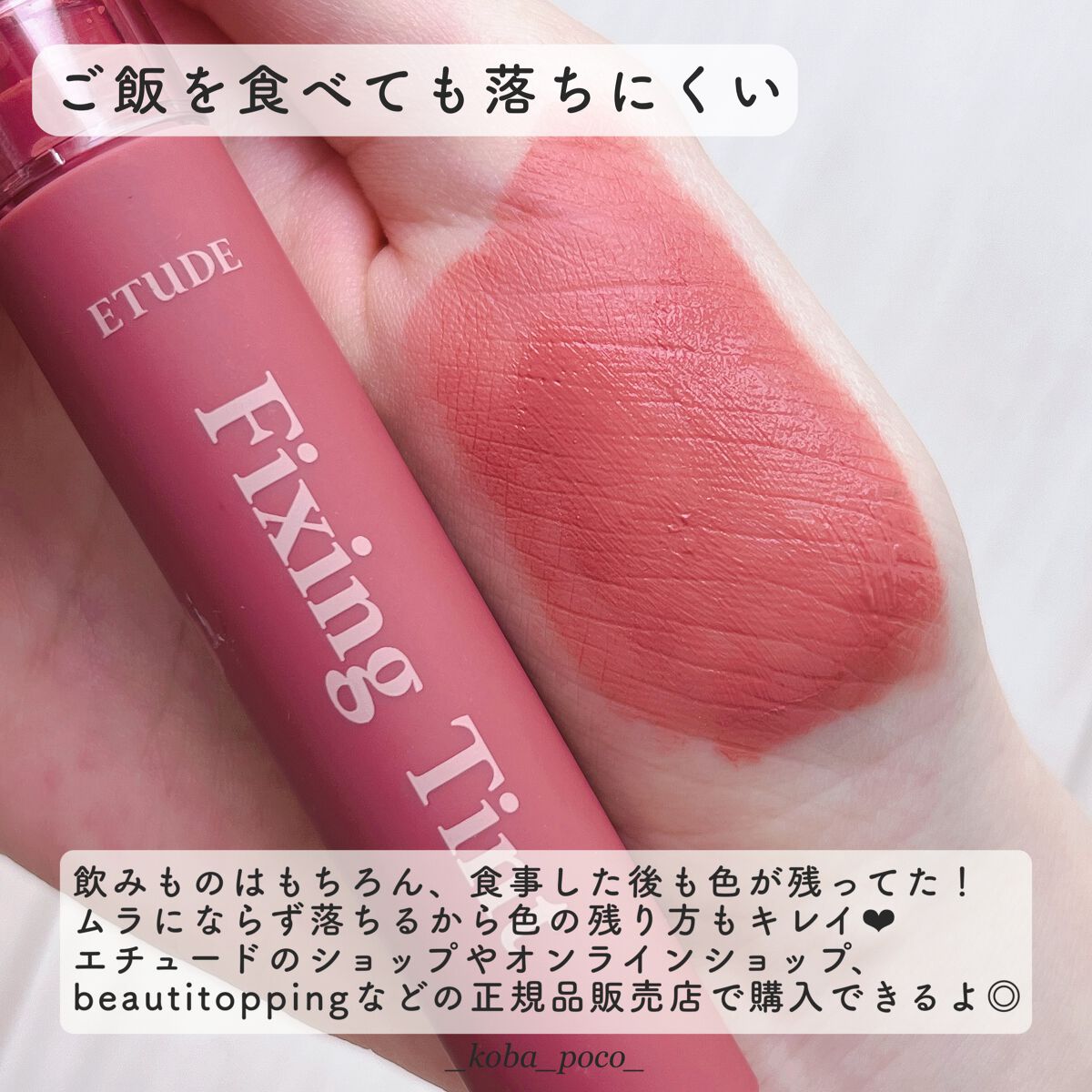 🧡ETUDEフィクシングティントローズラテ🧡発色、密着力が高いリップです💄✨塗った直後はツヤが出ますが、少し時間を置くとマットな仕上がりに変化して密着力が高まり落ちにくくなります🙌🏻マットな仕上がりなため、唇の縦じわや乾燥が気になりやすいので...
