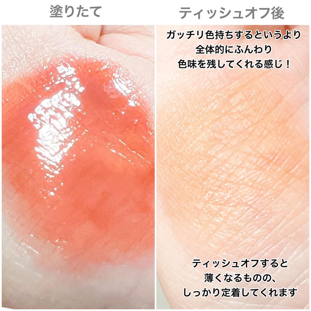 | リップティントランキング第3位 | 重ねて塗っても、ちゅるんと透け感が残って明るめカラーがとっても映える…💕色残りも◎ | 詳細を見る | ||