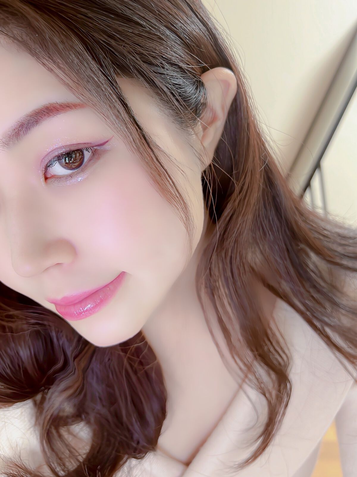 引きで見たらそこまで派手でないのでメイクだけ浮く感じは全くないです👌 スモアグレージュのアイライナーが良い感じに馴染むのでキツくなりすぎず、でもぱっちりした目元になります😊 パーソナルカラーをバチバチに意識したメイクをしてみましたがやっぱりしっくりきますね😆